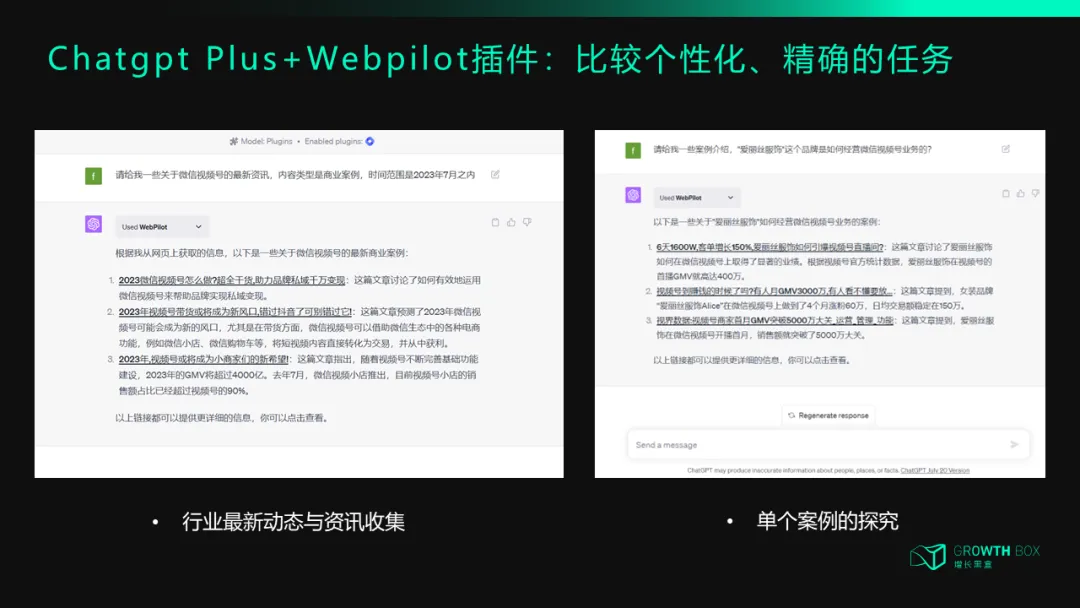 ChatGPT:还是与webpilot插件组合,能对文章进行更加深度的分析和逻辑推理,中英文皆可。比如你可以让它站在一个CEO的身份来总结文章的亮点,并延展其它知识。比较惊喜的是,它可以读取微信公众号文章!