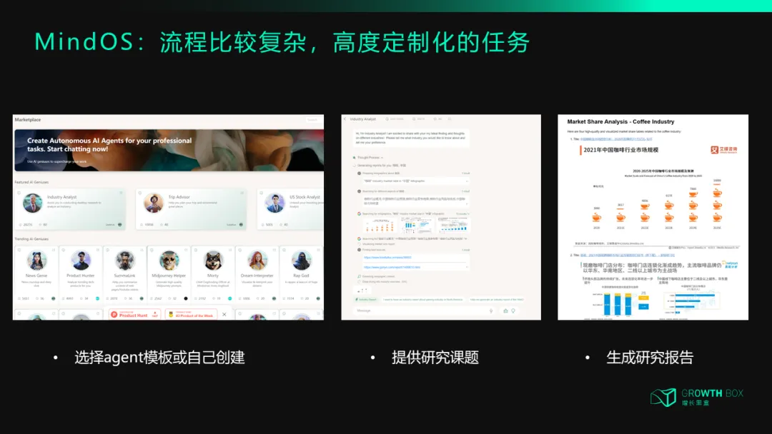 MindOS的高级功能很复杂,大家感兴趣就自行研究,此处不展开。我使用最多的是基础功能:在模板里选择industry analyst,然后把要研究的问题描述出来。系统就可以直接生成一份简要的报告给你,包含参考数据源。