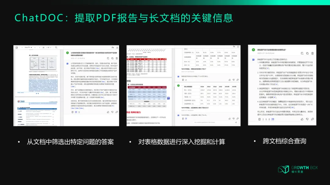 其原理并不是AI真的读完了这些文档,而是根据指令匹配向量化的片段。所以,数据、描述类回答结果理想,但不适合进行逻辑推理(单一文档的深挖,比如财报分析,建议用Claude2,下文会讲到)。对于中文支持良好。