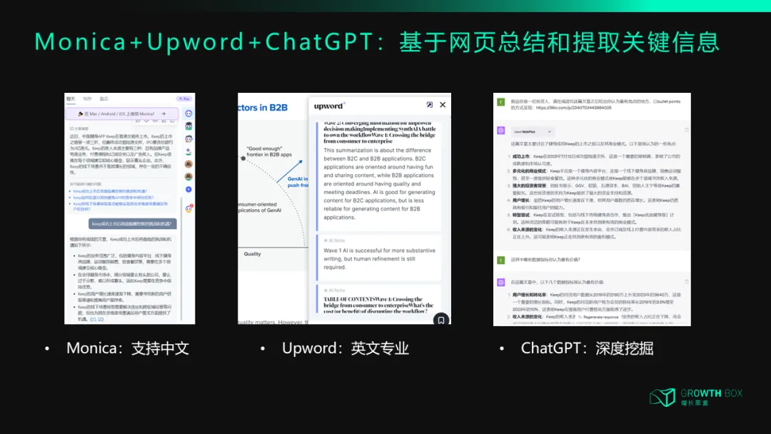 如果你找到了一大堆网页版的“万字长文”、“深度分析”,想从中找到关键信息,那可以利用工具的组合方案来帮你读文章。