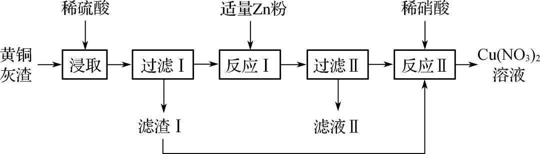 【解析】 反应Ⅰ处加入Zn粉,若前面加入的H2SO4过量,则会消耗更多的Zn,A正确;若Zn过量,滤渣中有Cu和Zn,加入稀硝酸,Cu和Zn均可以被溶解,生成Cu(NO3)2和Zn(NO3)2,B正确;Fe3+的氧化性强于Cu2+,Zn与Cu2+反应前,必然将Fe3+还原为Fe2+,所以滤液Ⅱ中不存在Fe3+,C错误;稀硝酸与金属产生NO,滤渣为Cu,先灼烧生成CuO,再溶于稀硝酸,不会产生NO,D正确。