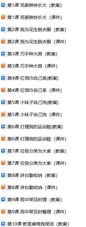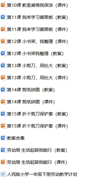 【电子版】2026人民版 小学一年级劳动 (教案+课件+计划)全套下载 可打印 下载原文请拉到文末 下载原文请拉到文末 01 资料目录 下拉到文章底部有二维码的地方下载 02 部分课件展示 版面有限 仅展示部分内容 03 部分教案展示 版面有限 仅展示部分内容 下载方法 长按二维轻松下载 电脑下载,方便保存 复制网址去电脑打开: https://jazpan.com/view/2444883 更多资源,关注以下公众号 教师·学生 图文来自网络,版权归原作者,如有不妥,告知即删 点击阅读原文下载1-12年级全部资料
