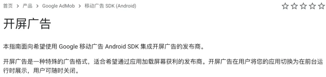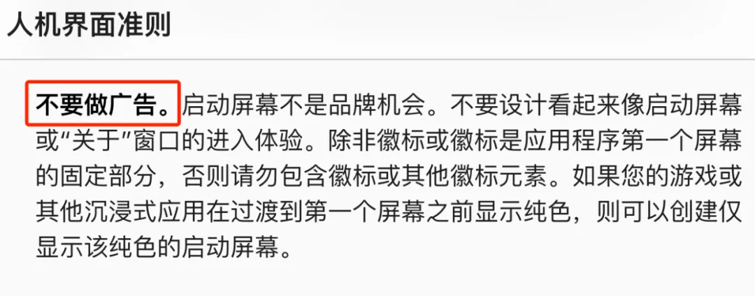 至于安卓系统,机哥今天顺便去瞧了瞧,发现谷歌的Android开发规范里,直接把“开屏广告”写出来了: