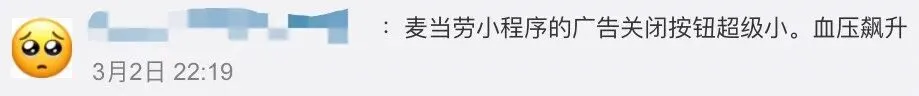 在App中看到不喜欢的广告很难找到关闭按钮,对于这种广告骚扰,群众反映很多。如果不想看到广告,关闭按钮应该很明显。遇到网络不良和垃圾信息,可以打12321举报。