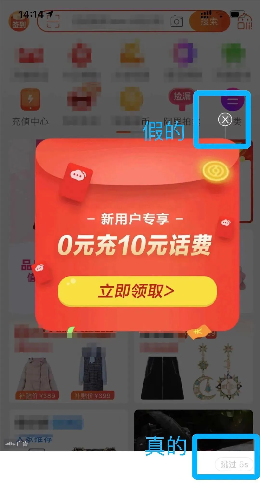 有些App开发者,他们倒是遵守了《广告法》,做了一个“X”在广告某个角落。