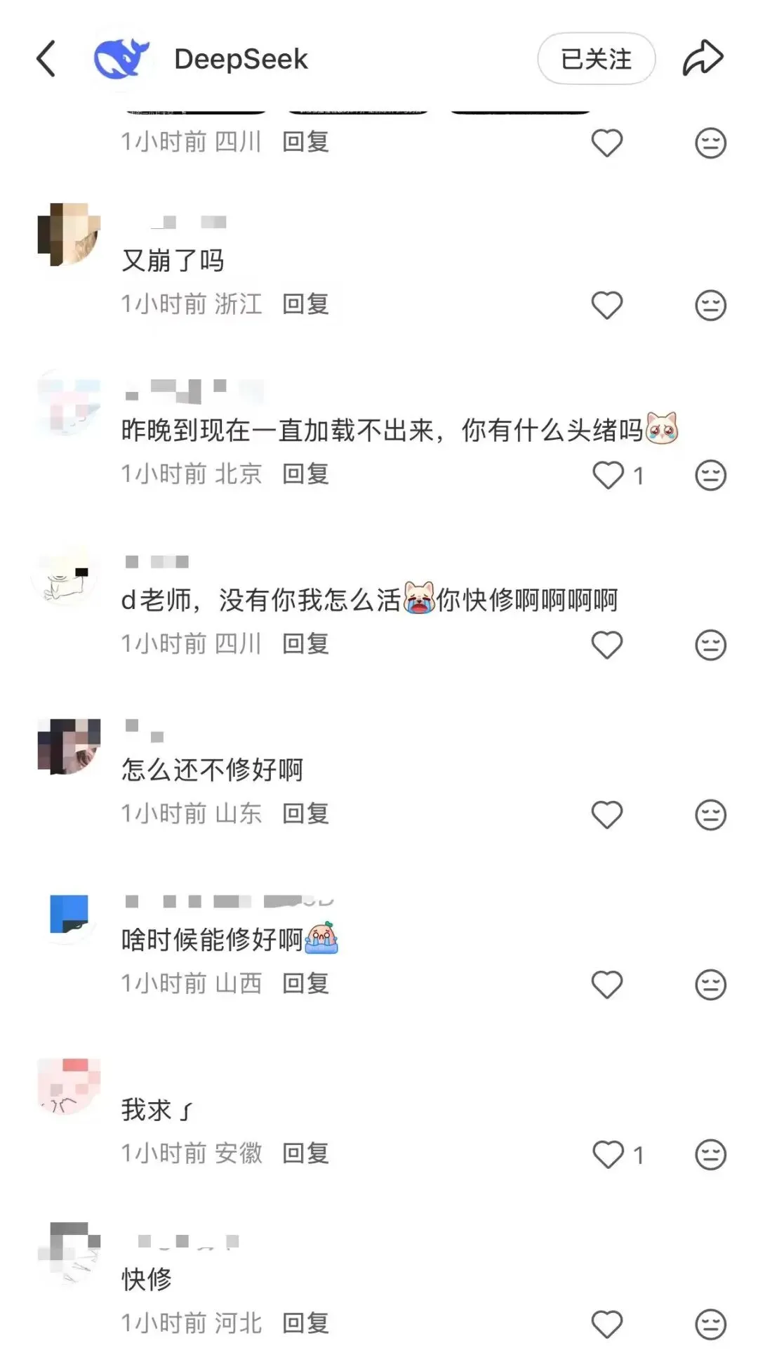 今日00:20,DeepSeek对网页、App性能异常问题进行调查,并于01:24实施修复方案。