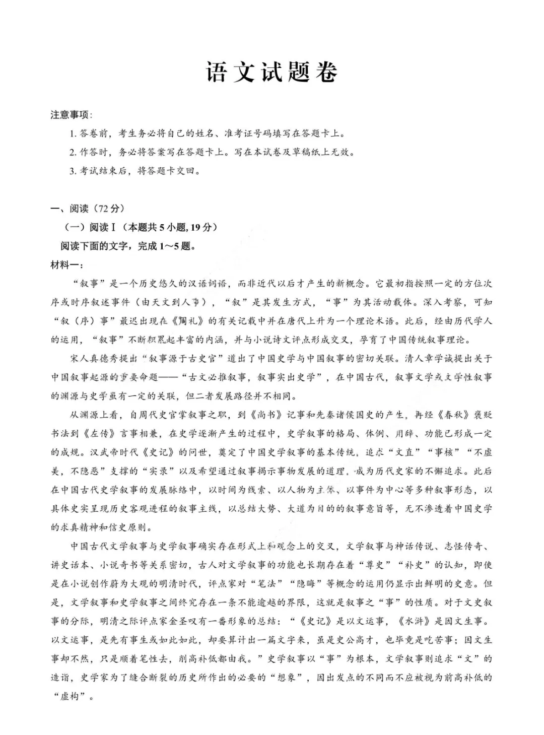 2026 届重庆一中高三年级下学期3月(月考)语文试卷及答案