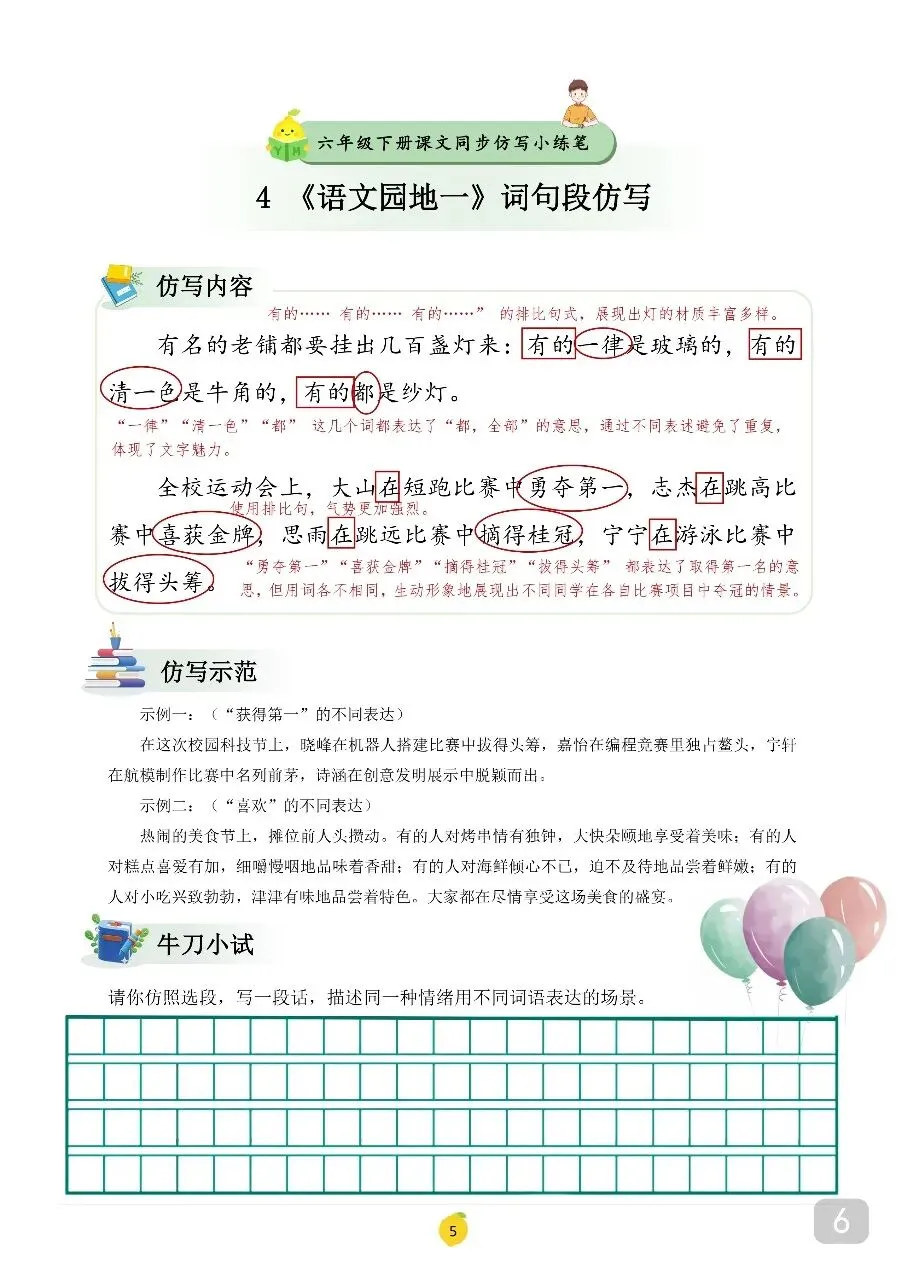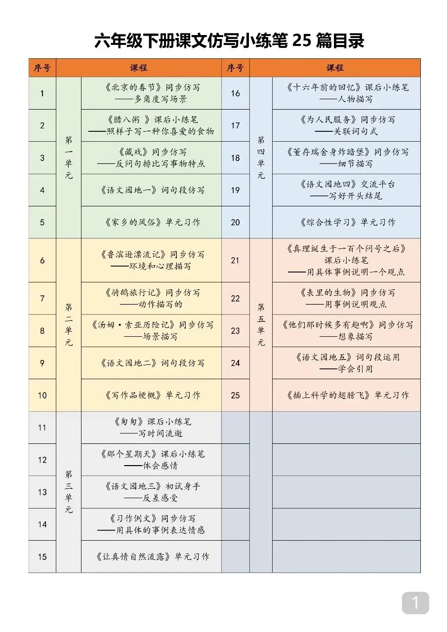 六年级(下)语文 课文仿写小练笔.pdf 篇幅有限,无法全部展示。 请按照文末方式领取,无门槛永久免费,欢迎转发,帮助更多有需要的人~ 温馨提示: 文末有完整电子版领取方式! 领取完整电子版: ①:点一点右下角的“👍”和“❤️” ②:在公众号对话框中回复“资料1605”
