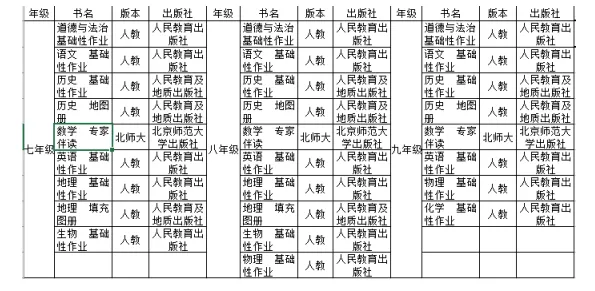 本学年学校选用教辅信息如下: