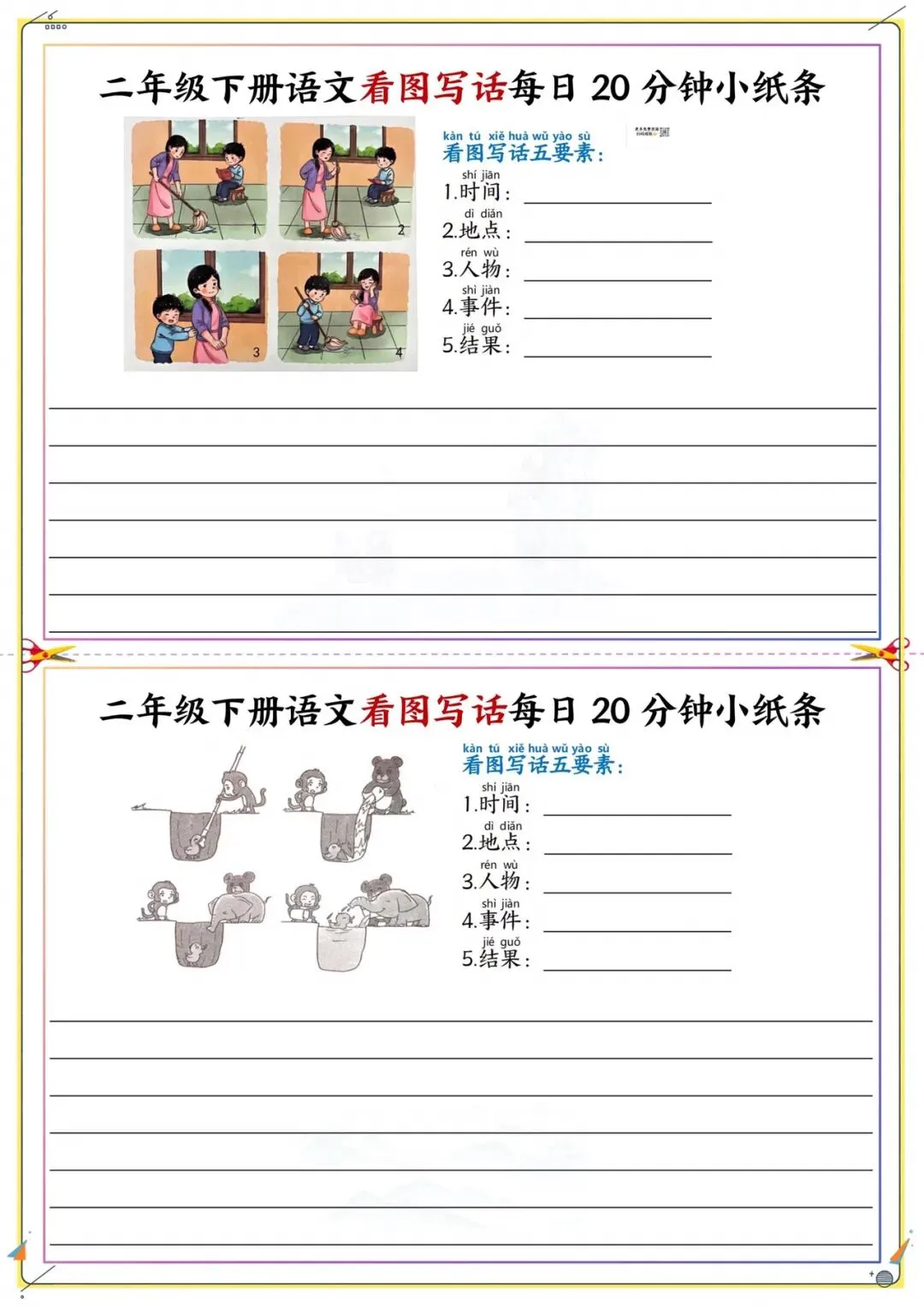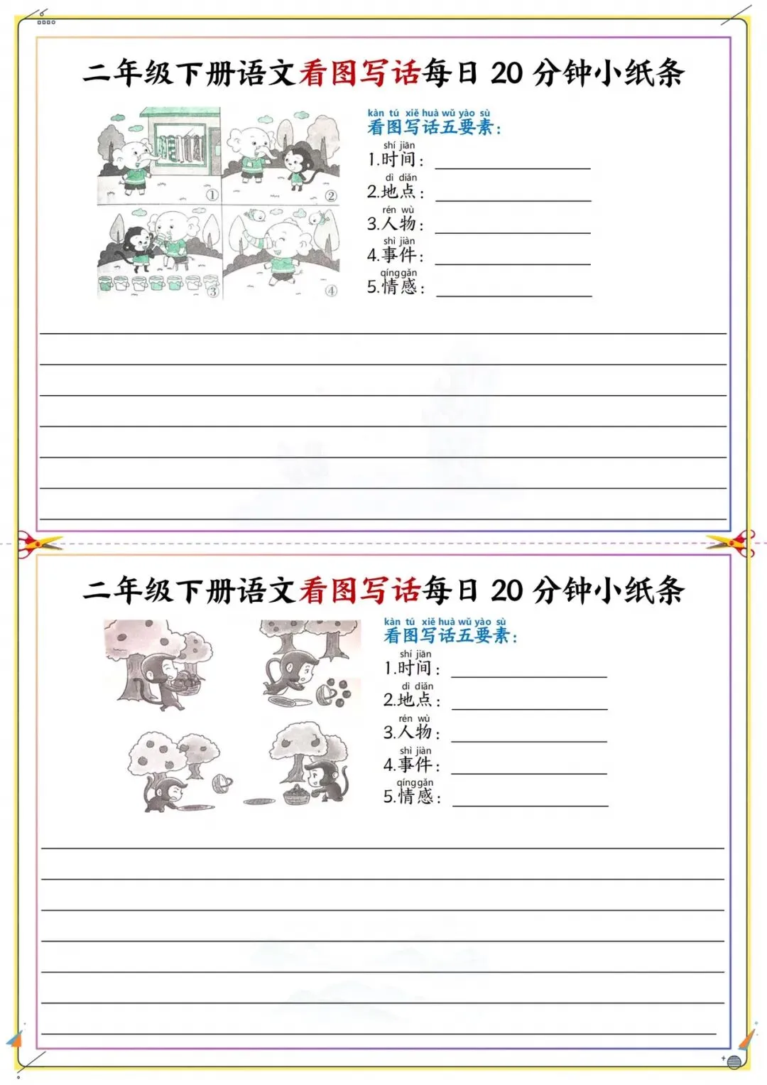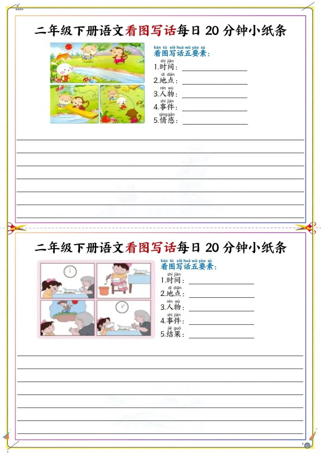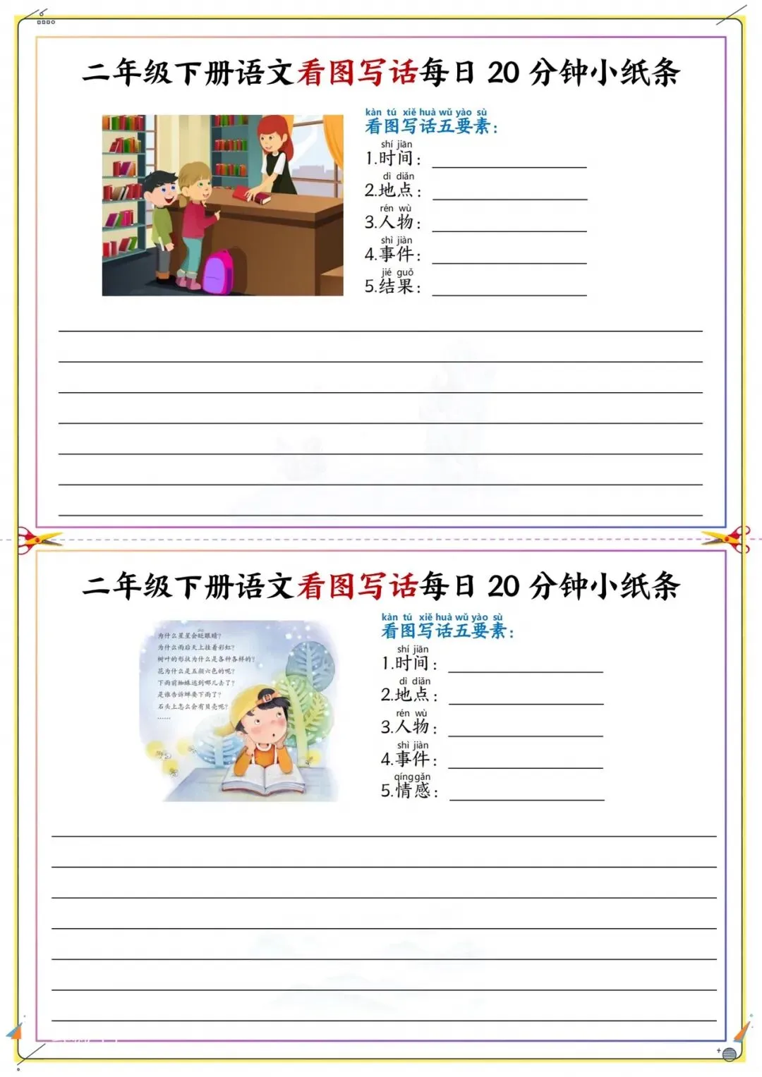二年级下册看图写话每日练|附五要素模板|可打印