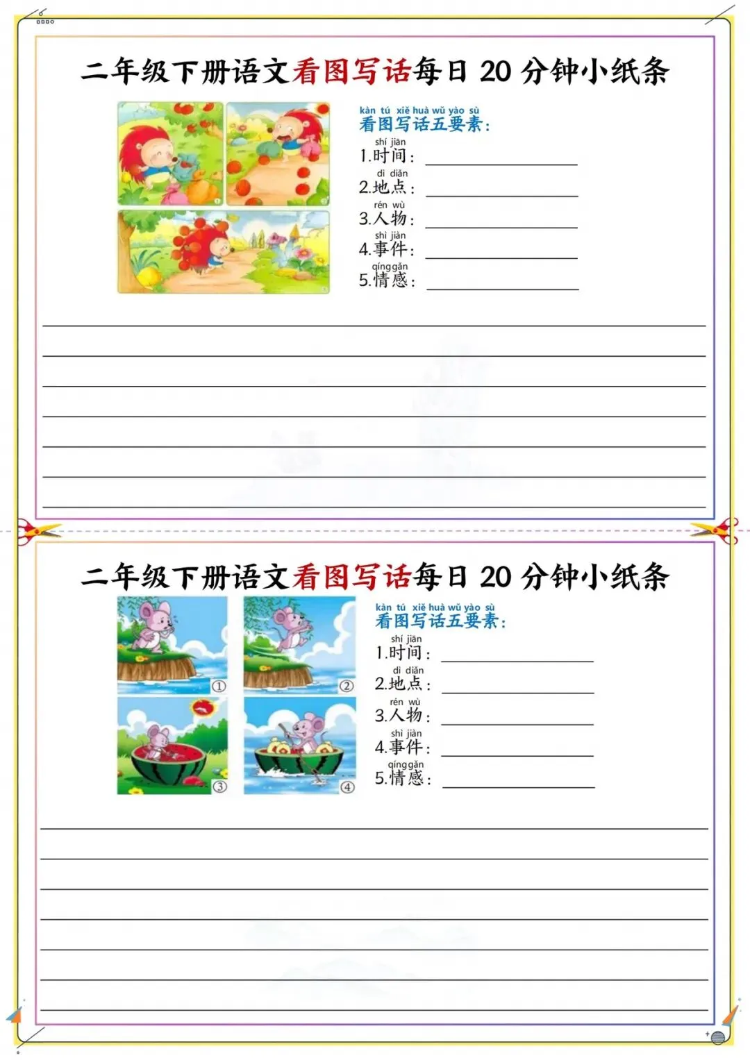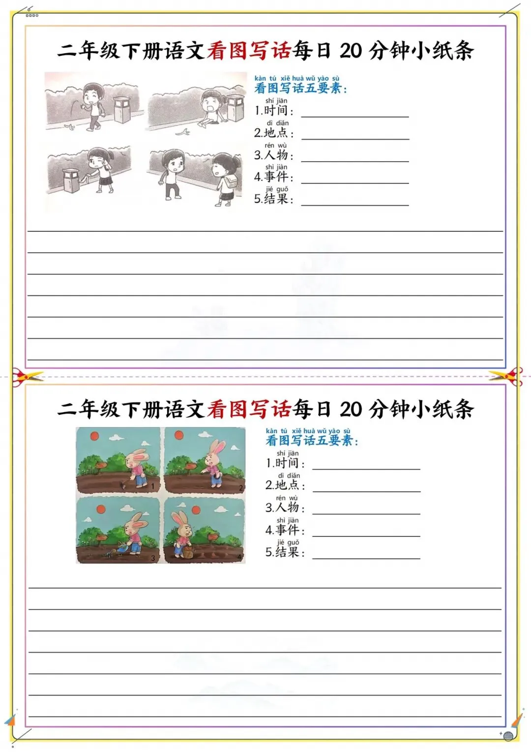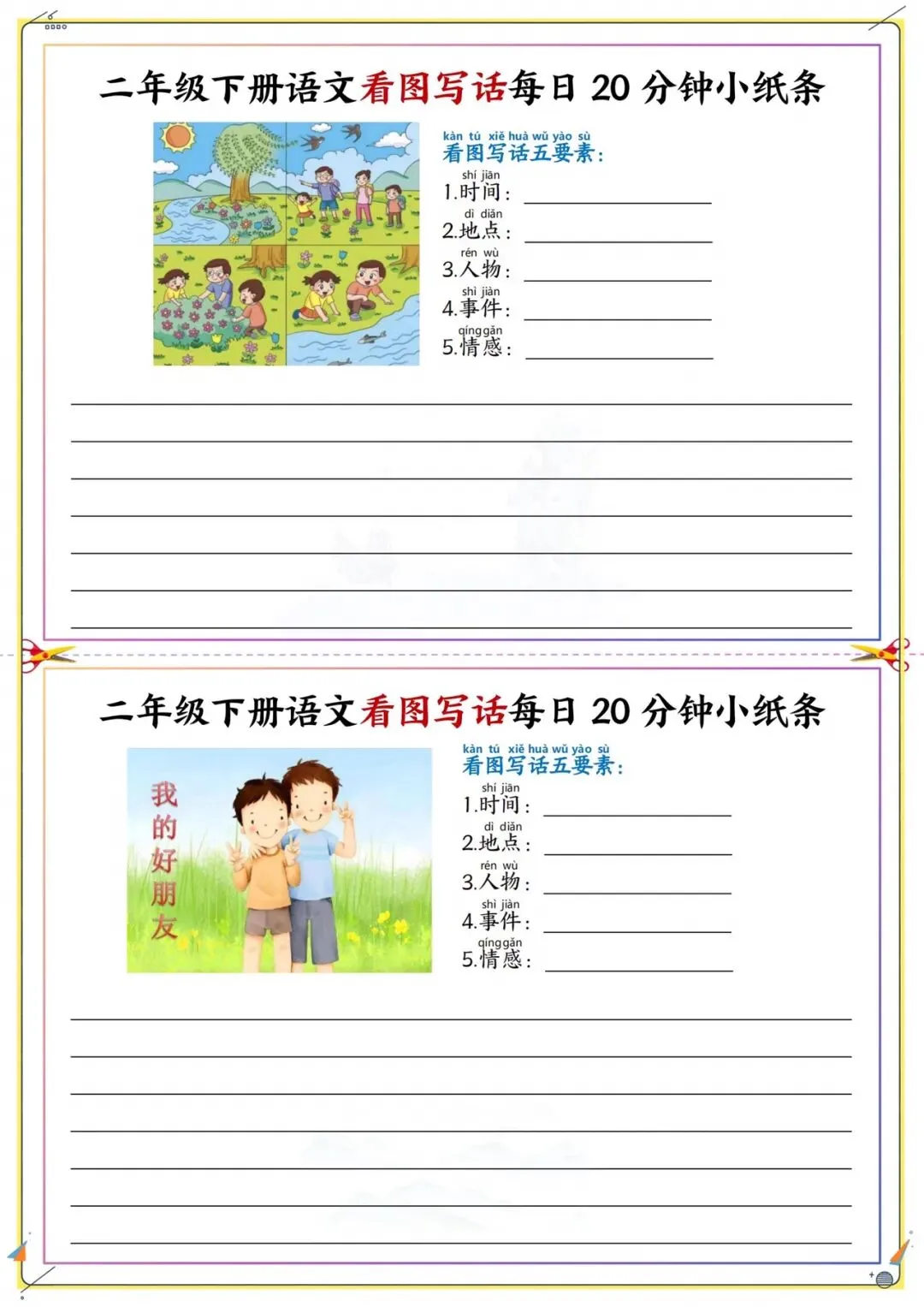 二年级下册看图写话每日练|附五要素模板|可打印