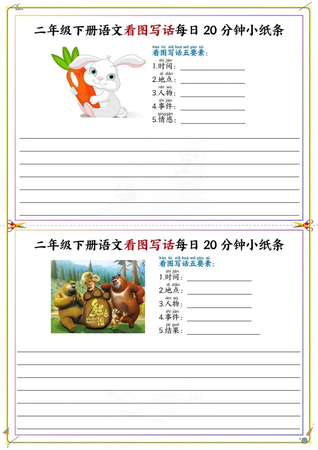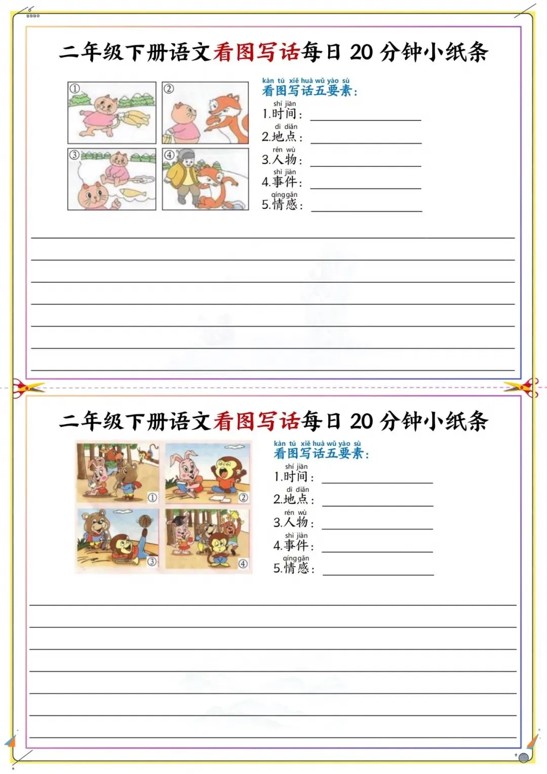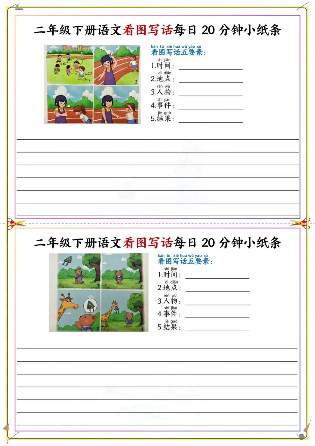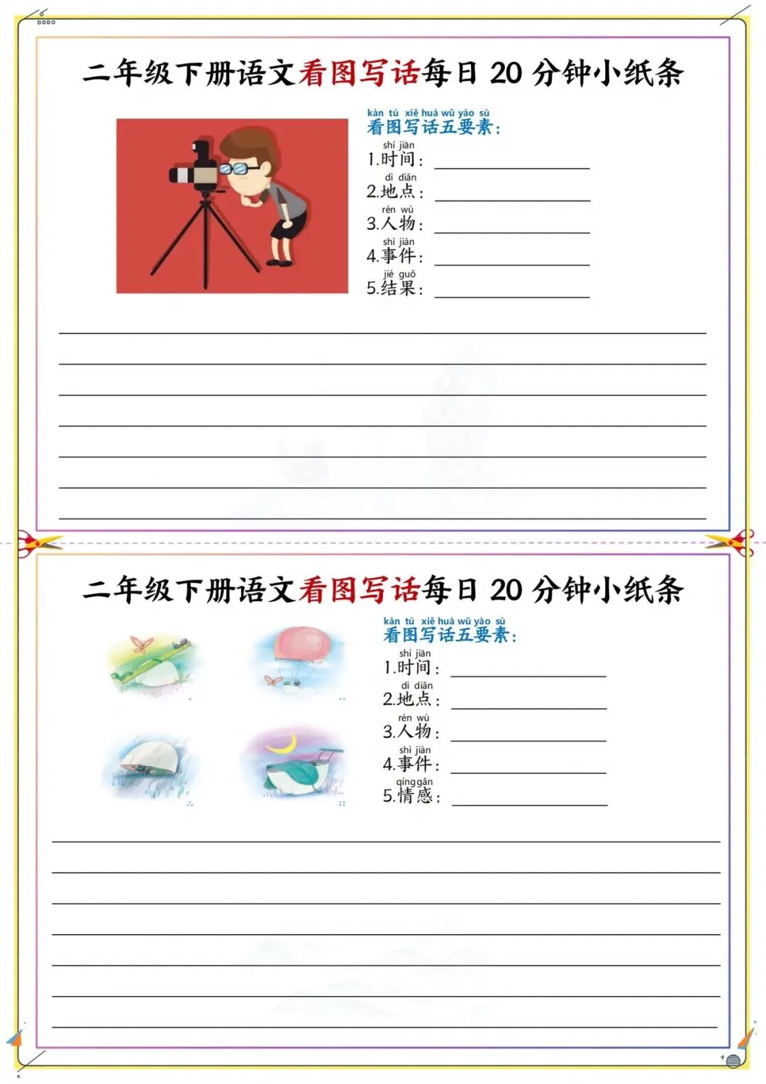 二年级下册看图写话每日练|附五要素模板|可打印