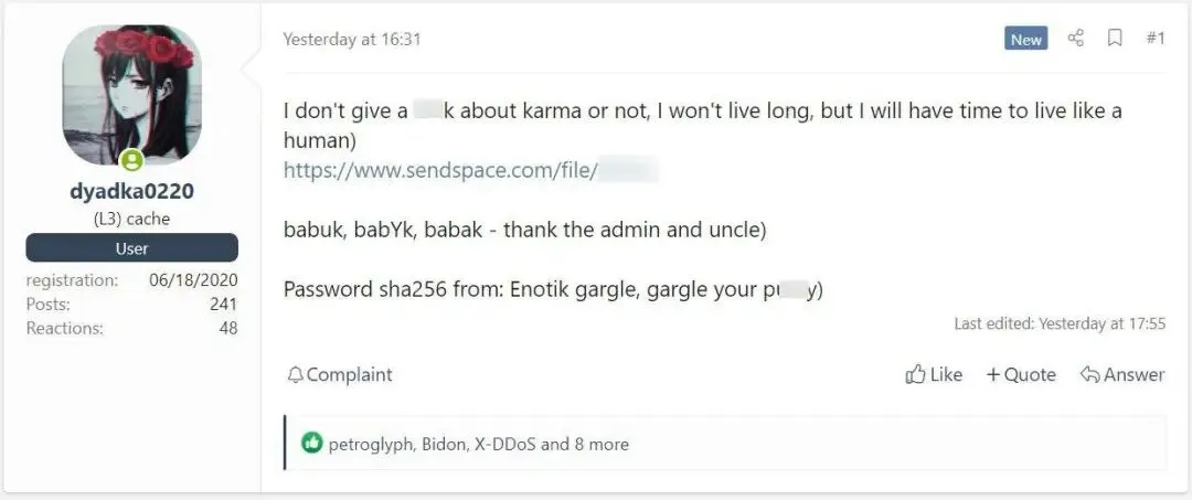 安全研究机构vx-underground首先发现有自称Babuk组织成员的黑客在俄语黑客论坛上发布了Babuk勒索软件源代码。