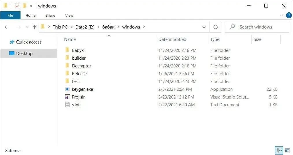 泄露的内容中包含创建勒索软件可执行文件的所有内容。泄露的共享文件包含适用于 VMware ESXi、NAS 和 Windows 加密器的不同 Visual Studio Babuk 勒索软件版本,如下所示。