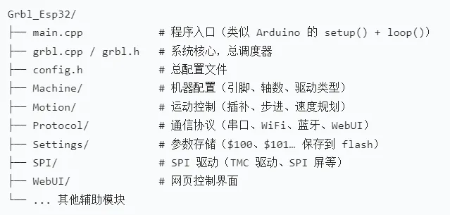 Grbl_Esp32 是由 bdring 维护的开源项目,是经典 Grbl CNC 固件在 ESP32 上的高性能移植版,用于驱动雕刻机、激光机、数控铣床等设备,解析 G‑code 并做高精度运动控制。