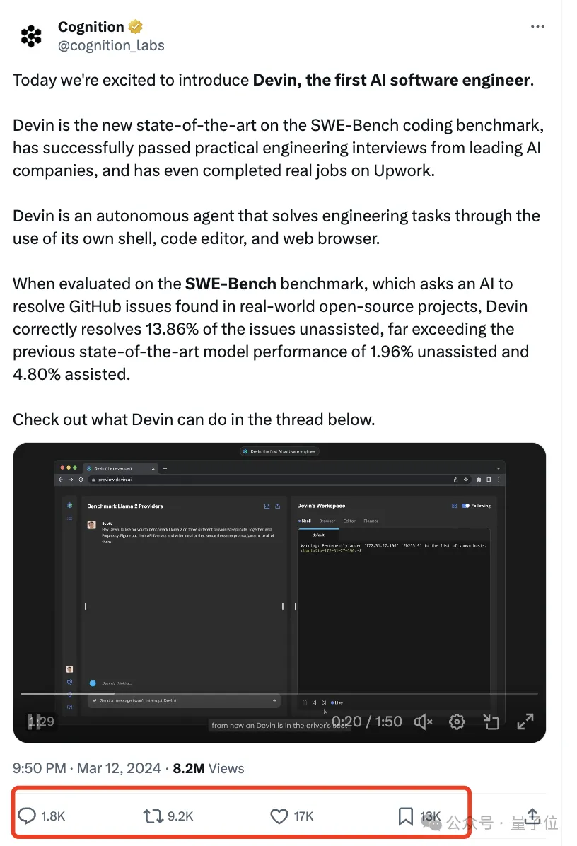 Devin被介绍为世界首个完全自主的AI软件工程师。