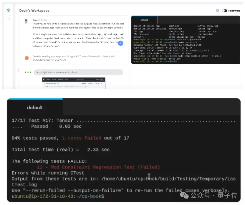 接着,Devin就会按部就班地编写测试用的程序并准备好有关数据,然后运行。