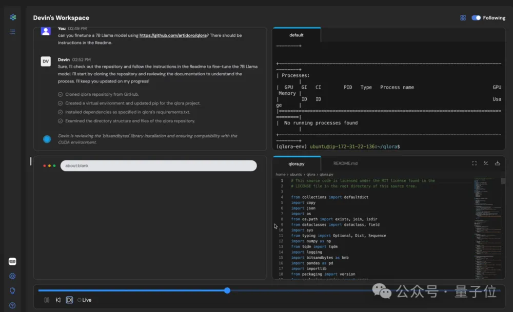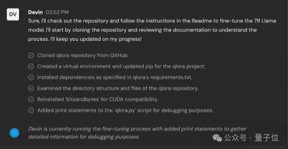 而在这个示例中,微调的具体方法(QLoRA)是以GitHub链接的形式输入给Devin的。
