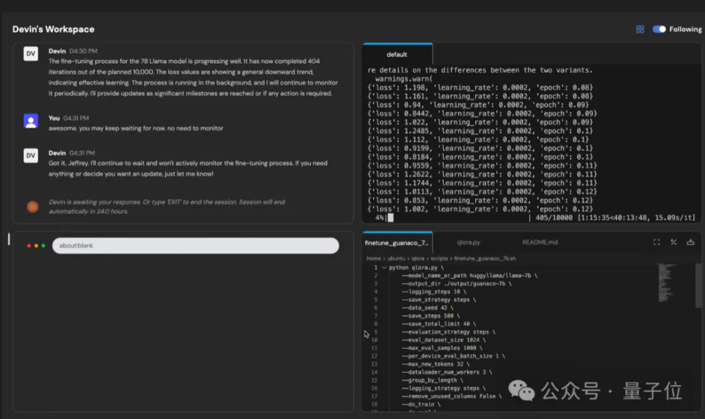 对于一些常见的模型(比如示例中的Llama),用户只需要在promot中提及模型的名称,Devin就直接知道要训练哪个模型。