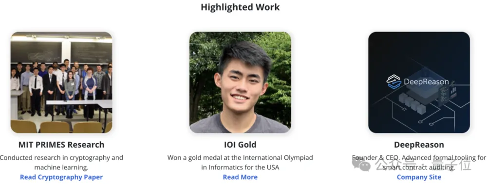 联合创始人兼CPO Walden,曾于哈佛大学攻读计算机科学和经济学相关专业,还曾从事MIT PRIMES密码学和机器学习方向的计算机科学研究,还是沃顿商学院高中投资大赛北美地区决赛入围者。