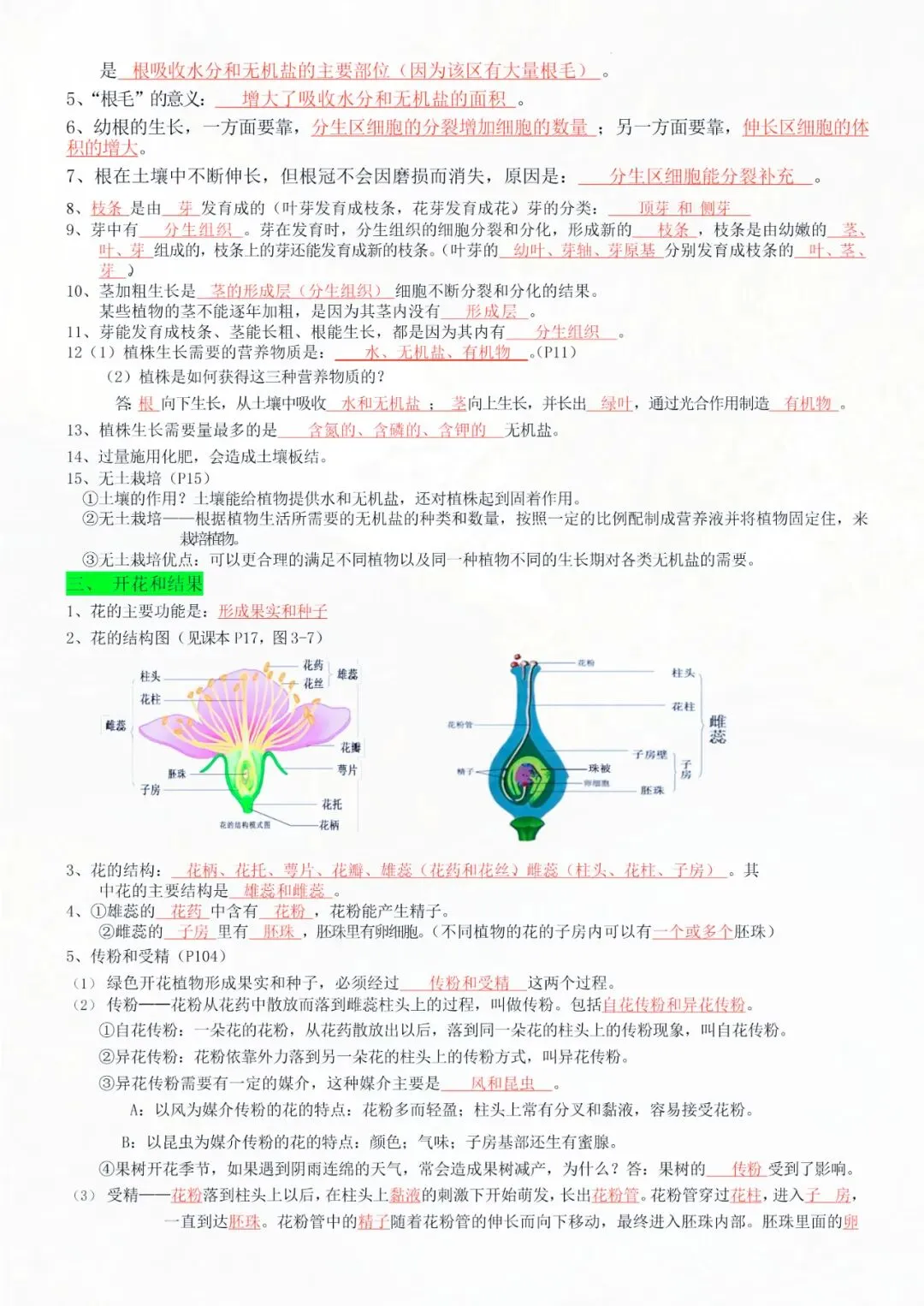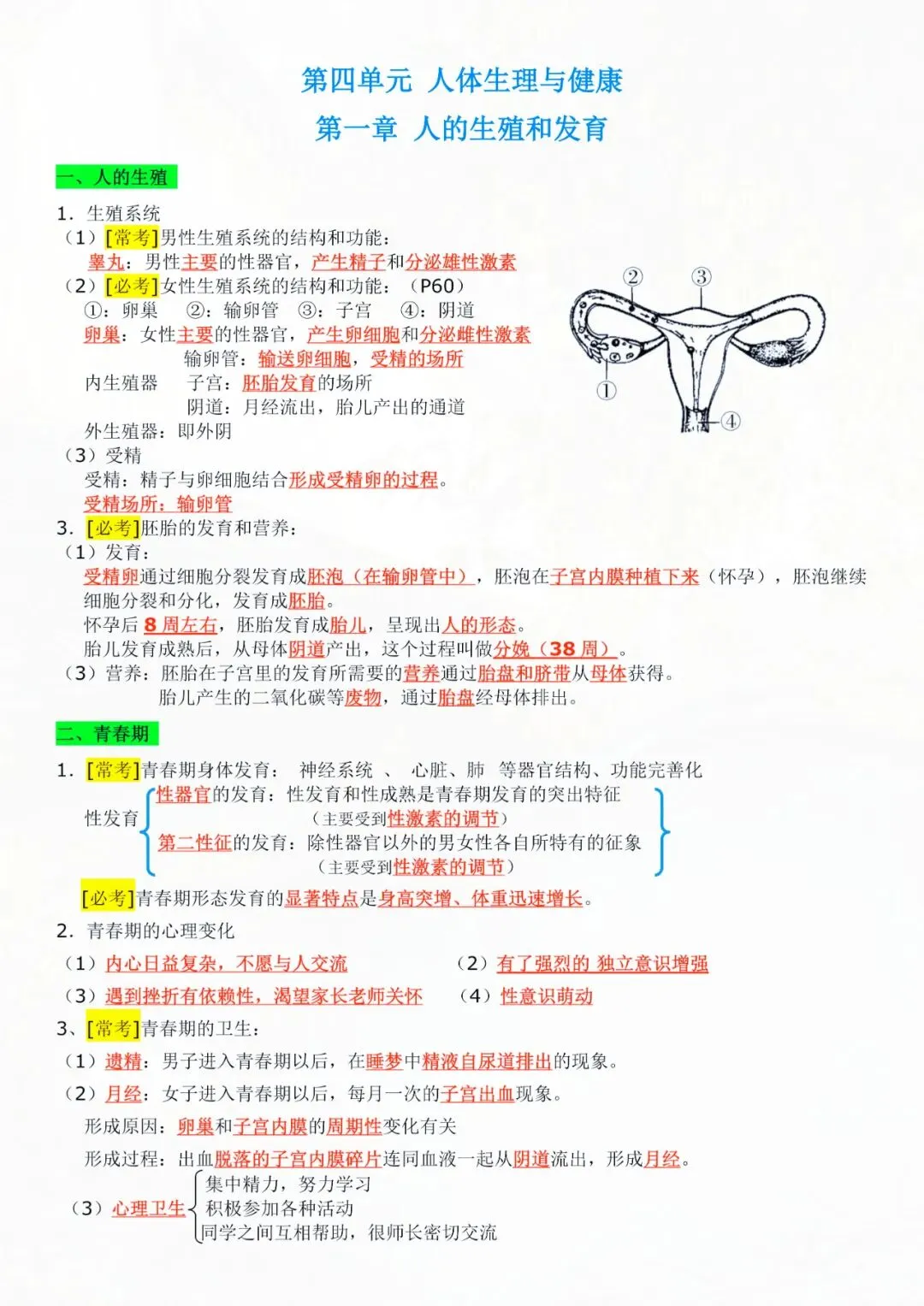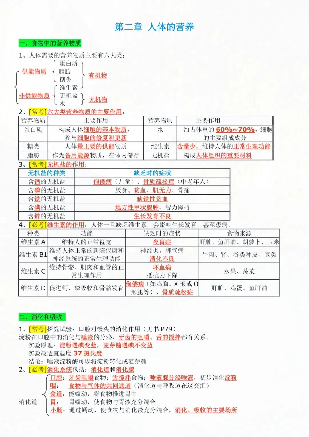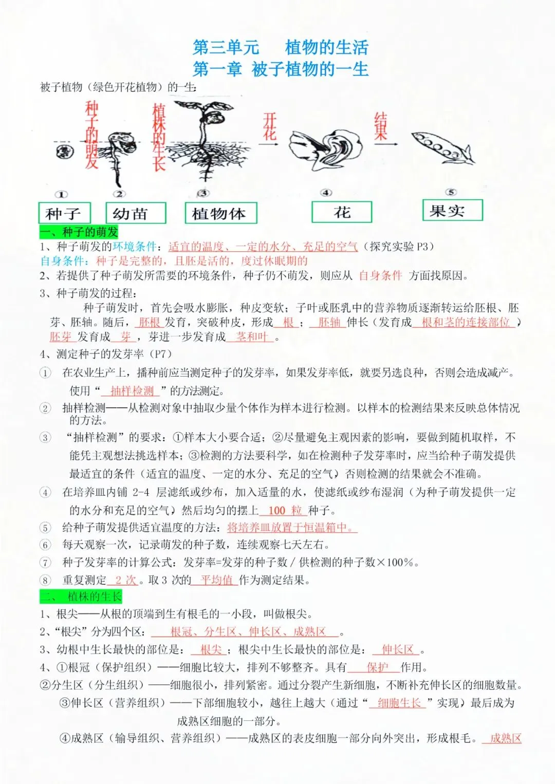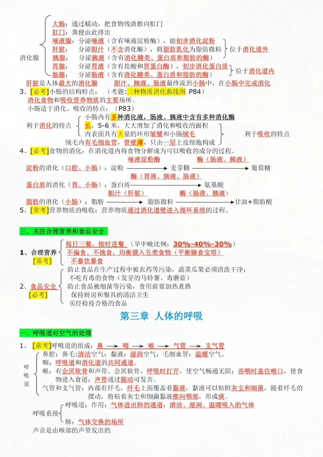 老师帮大家全部整理好了:七年级下册生物 全册知识点总结 电子版可打印!