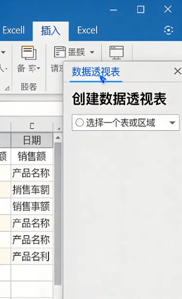 把你的数据字段(如”产品名称”、”销售日期”、”销售额”等)从字段列表拖到对应的区域: