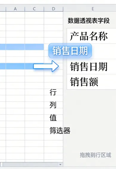 正解:同一个字段可以在行、列、值、筛选器之间随意拖拽!比如”销售日期”可以放在行区域看按日趋势,也可以放在列区域对比不同日期,超级灵活!