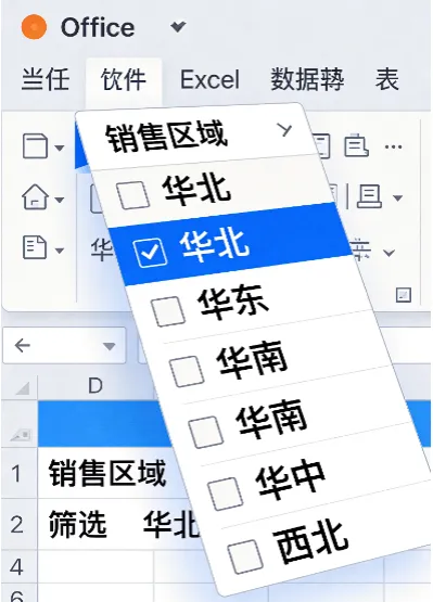 点击下拉框,选择你想查看的具体项(如只查看”华北”区域的销售)