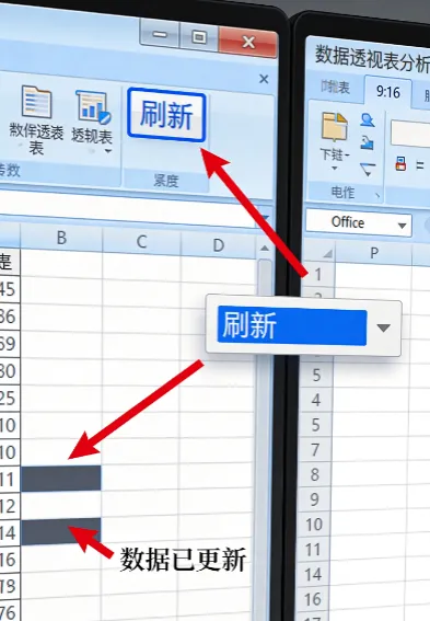 正解:只要新增的数据在原始数据范围内(比如在表格末尾添加新行),刷新一下透视表就能包含新数据。如果新增数据超出了原有范围,需要右键透视表→【更改数据源】来调整范围。