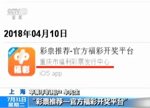 重庆市福利彩票发行中心工作人员表示,他们的彩票只能在重庆本地的投注站购买,而且国家禁止网上售卖彩票。为何在苹果的应用商店里会下载到打着“重庆市福利彩票官方平台”的APP呢?遭受损失的牟先生从4月底开始向苹果公司维权。
