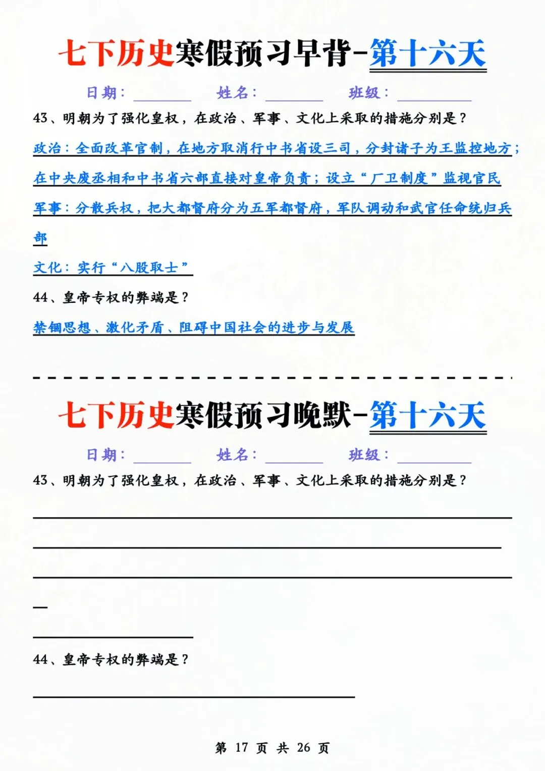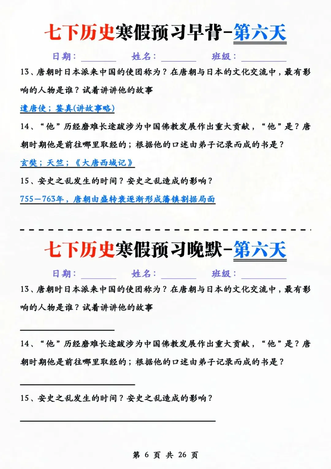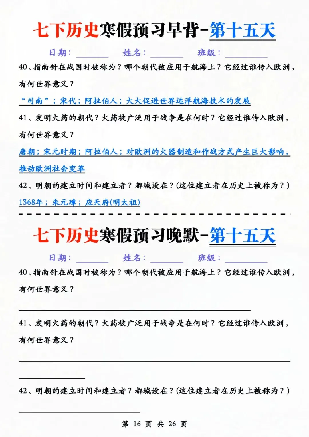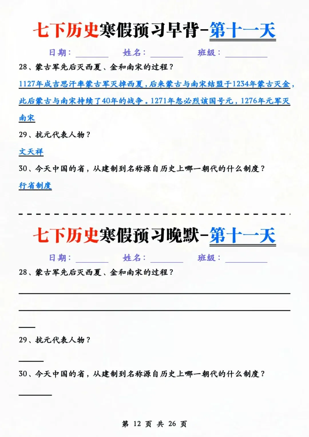 七年级下册历史 早背晚默 电子版可打印