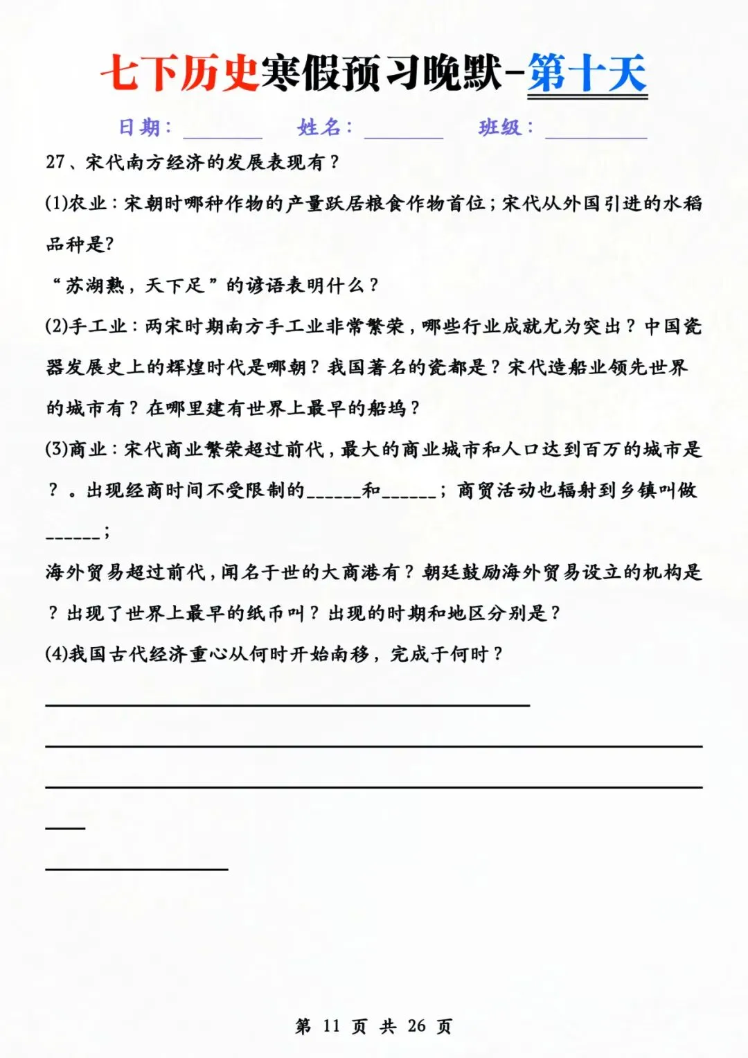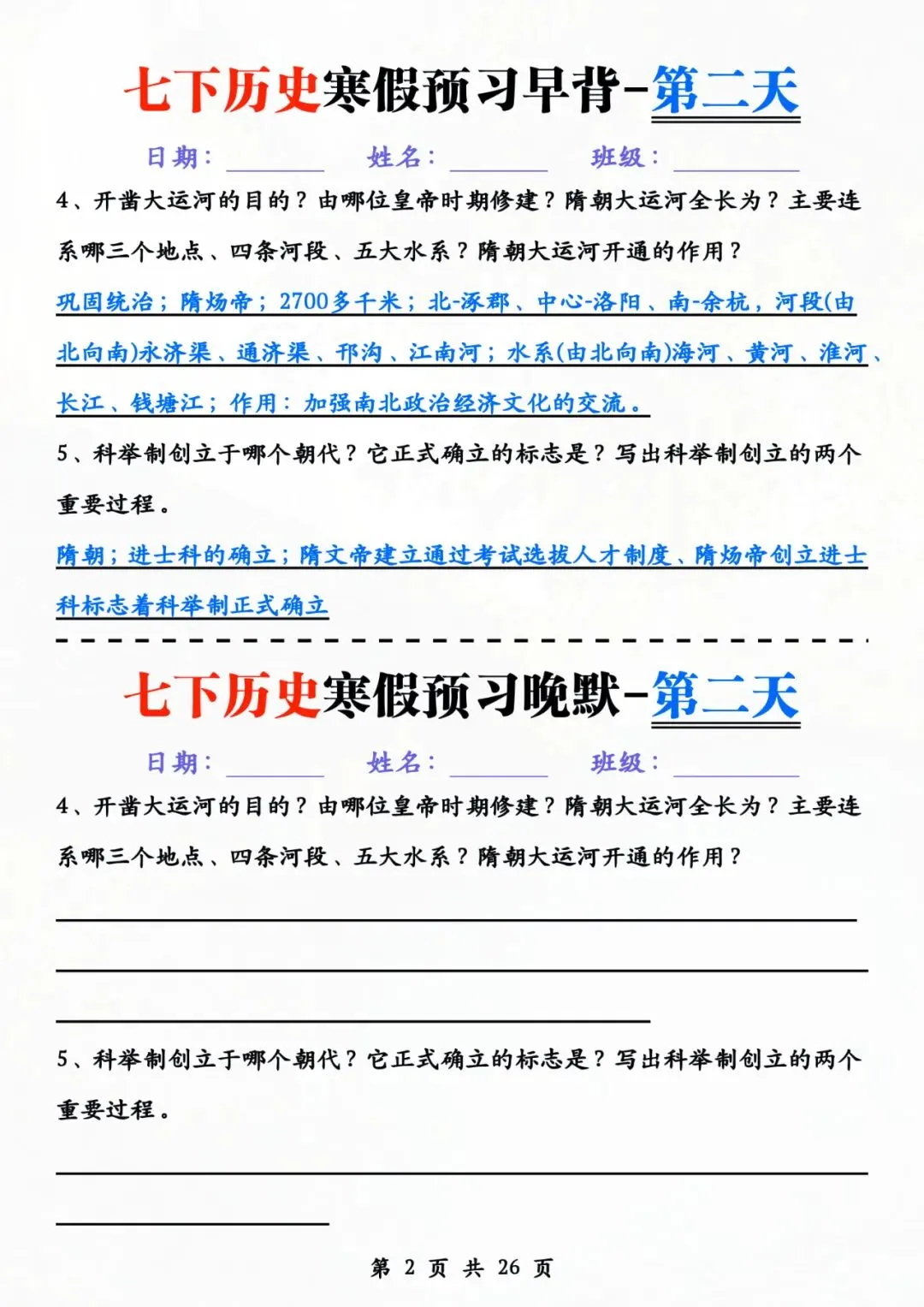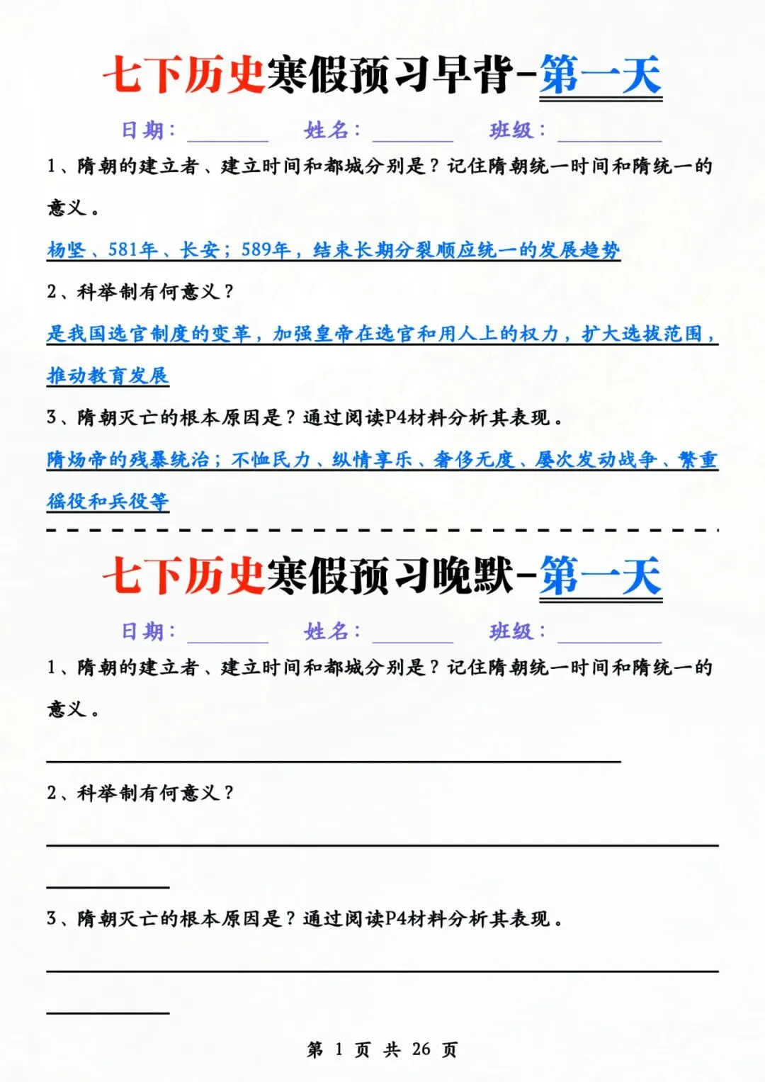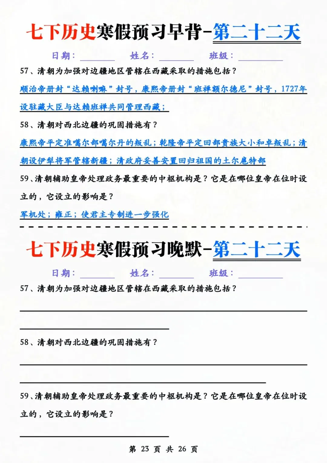 七年级下册历史 早背晚默 电子版可打印