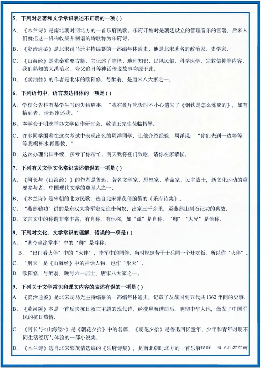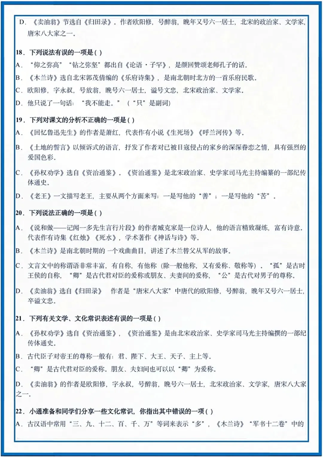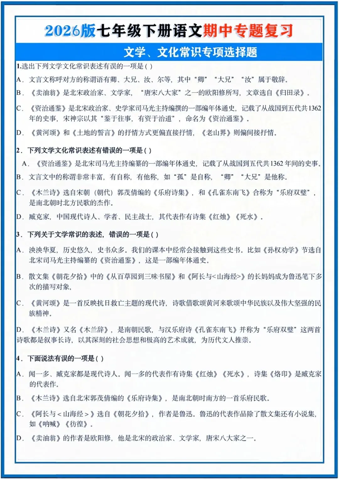 今天老师为大家整理好了:七年级下册语文 期中专题复习附答案 电子版可打印!