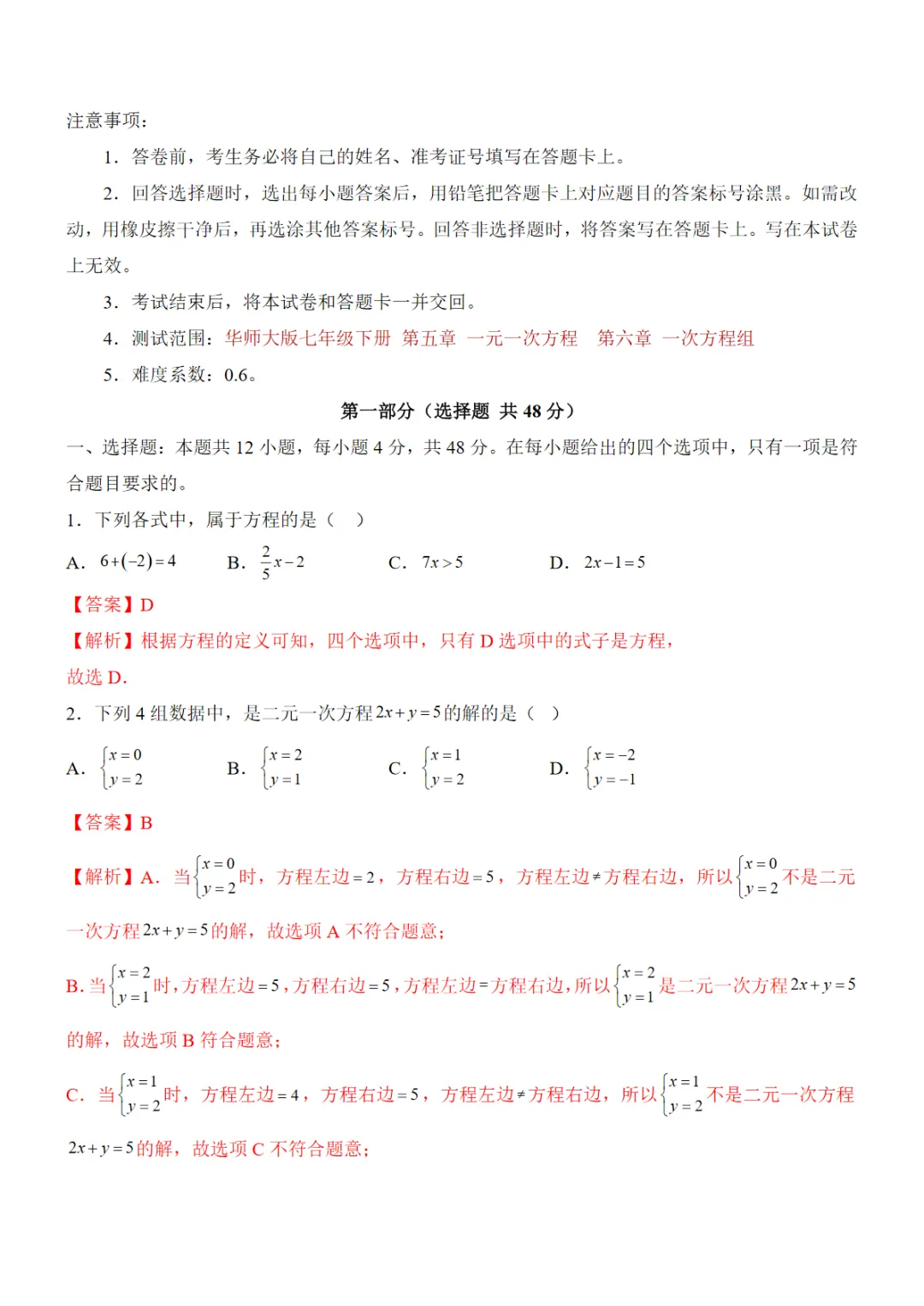 【免费下载】【华师】7下数学第1次月考【第5-6章】PDF高清电子版,可打印,先保存后