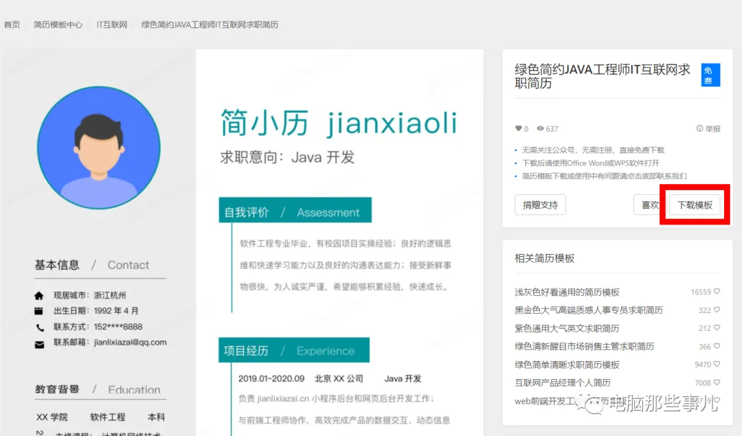 8、获取简历模板下载地址