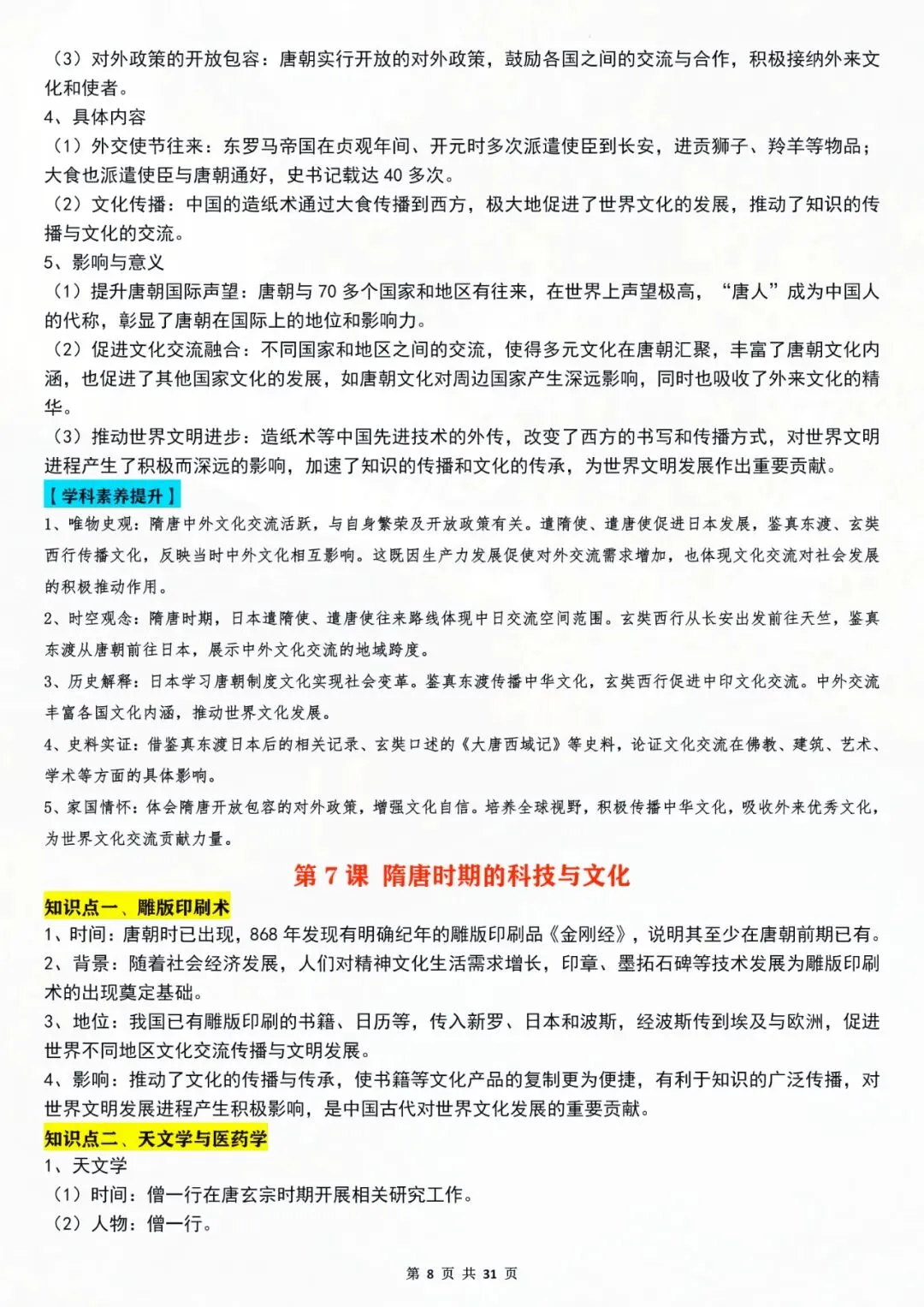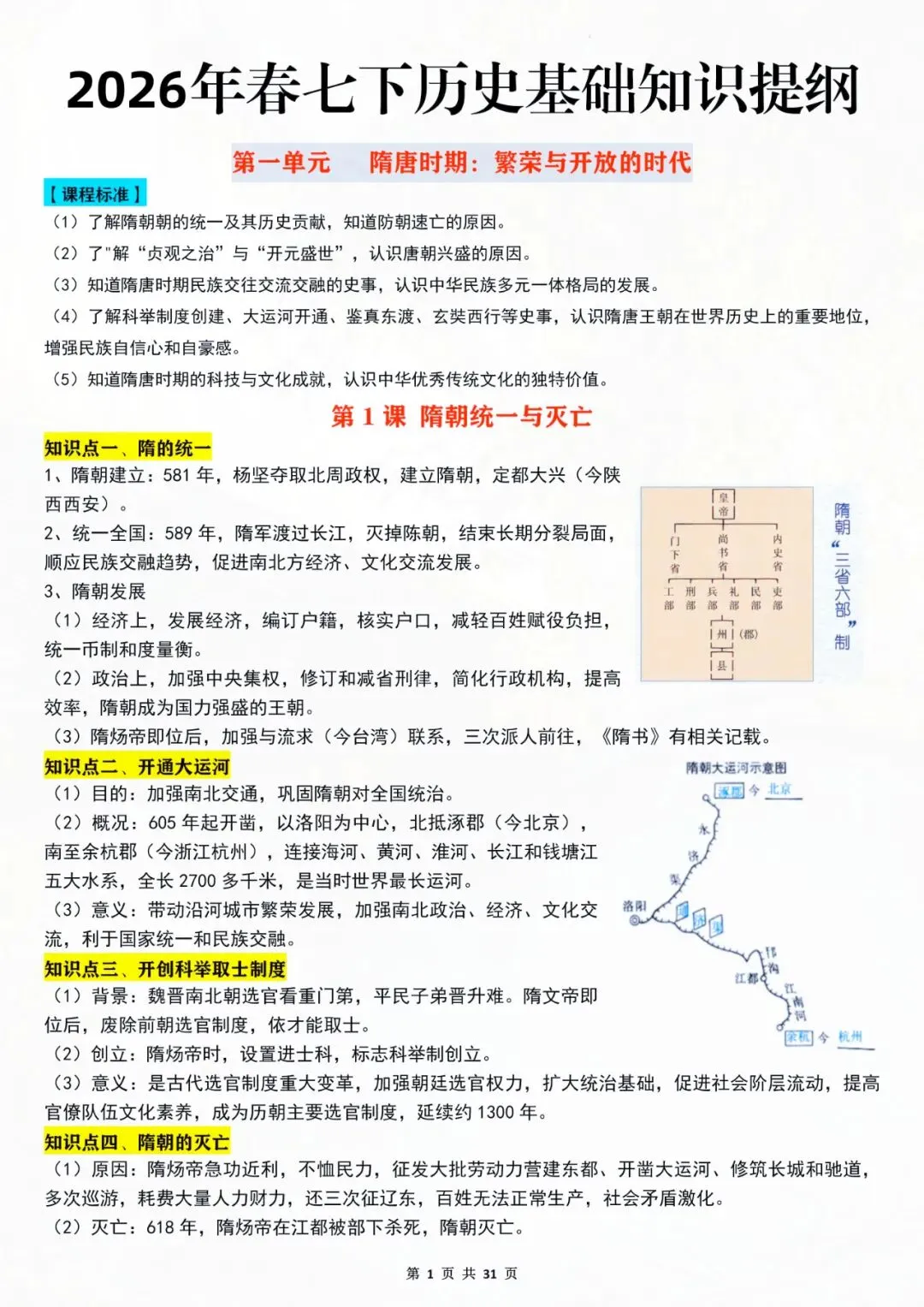 今天老师整理好了:七年级下册历史基础知识提纲全汇总电子版可打印!