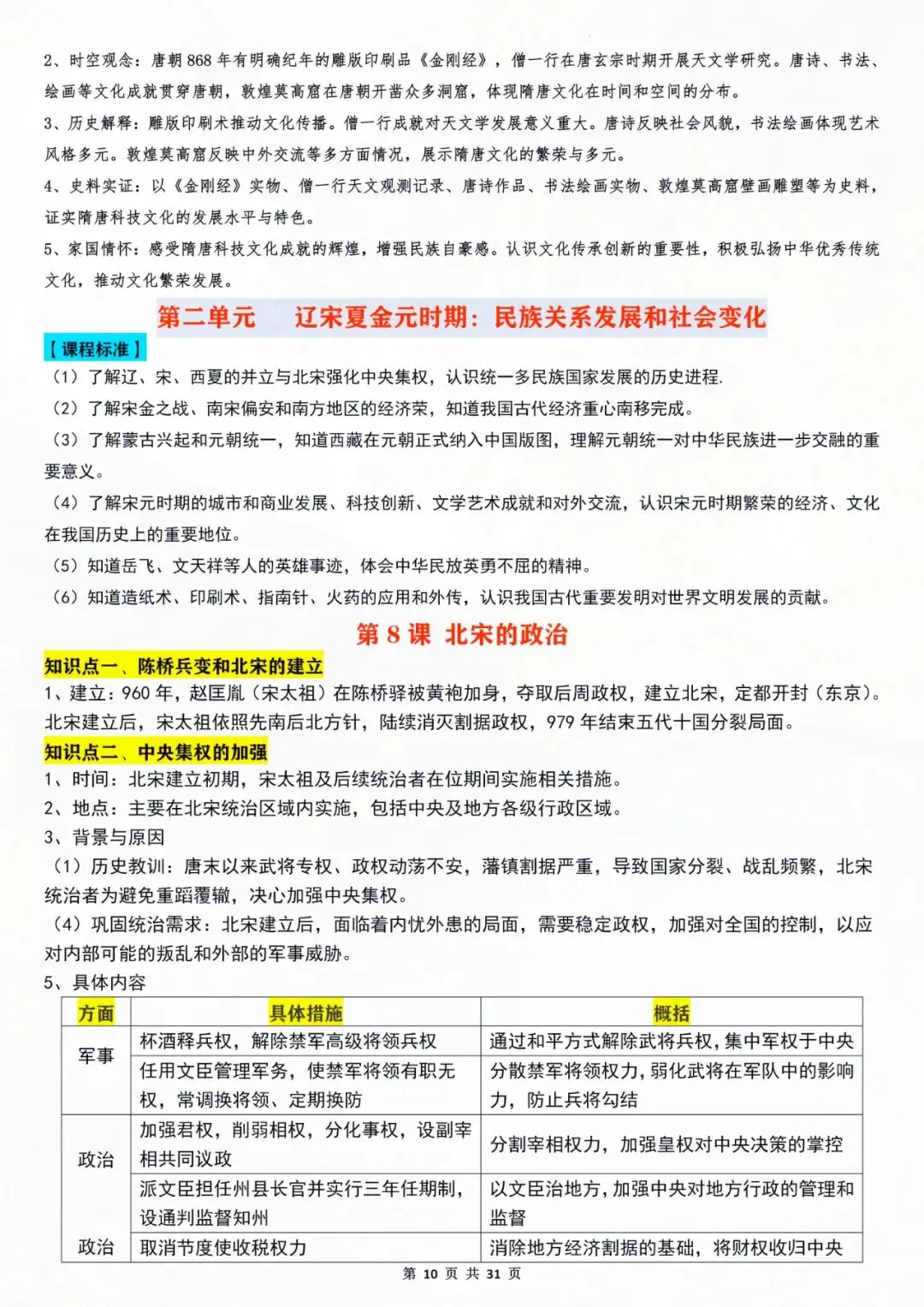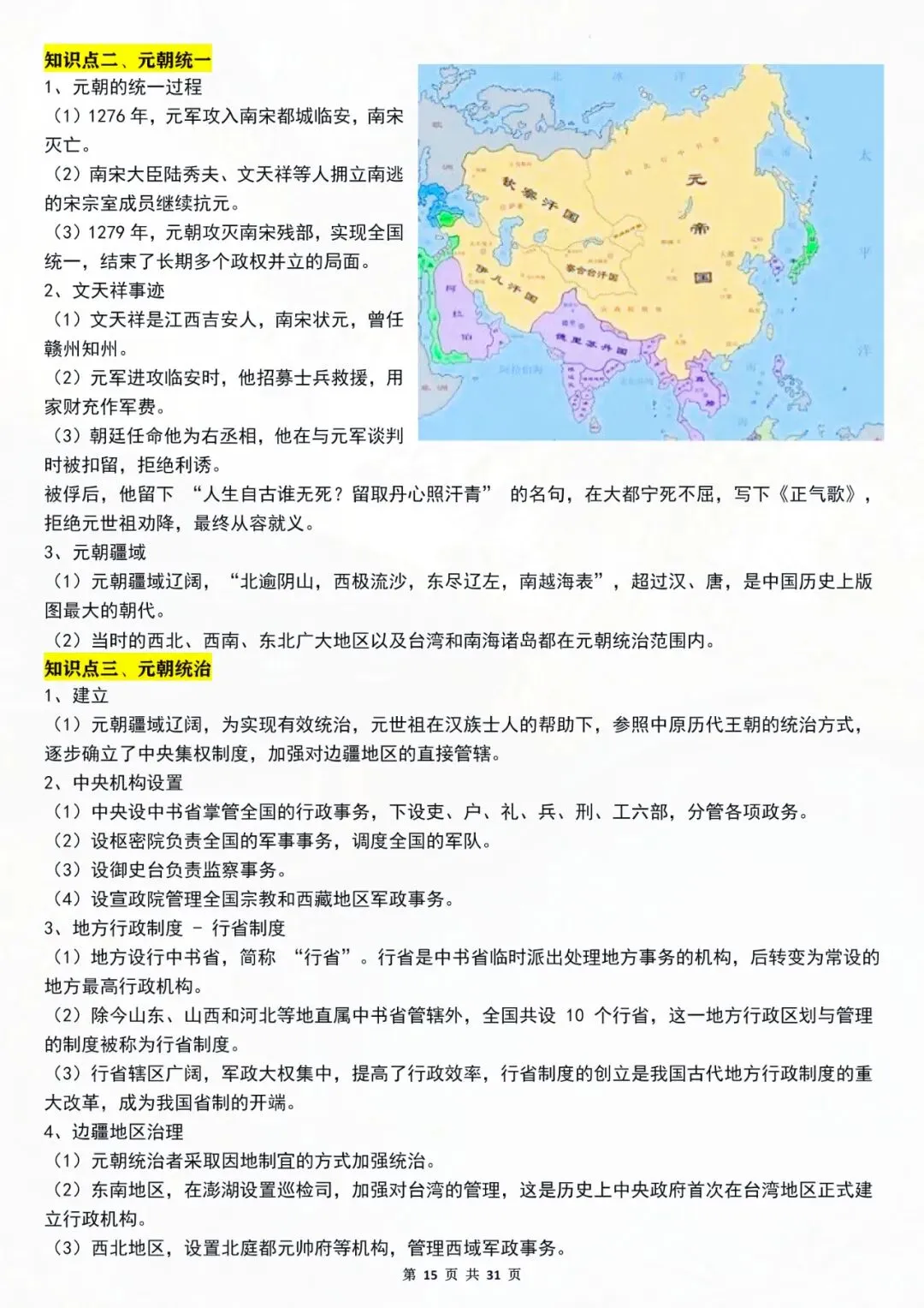 七年级下册历史基础知识提纲全汇总电子版可打印