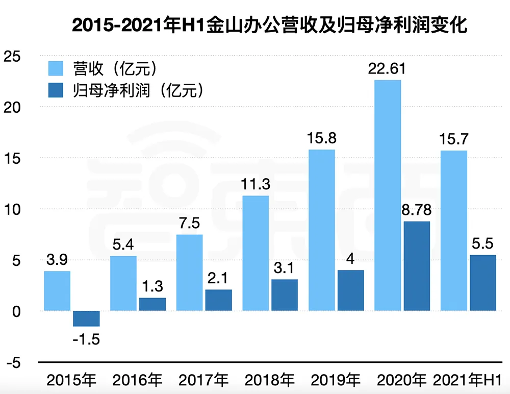 ▲2015-2021年H1金山办公营收及归母净利润变化