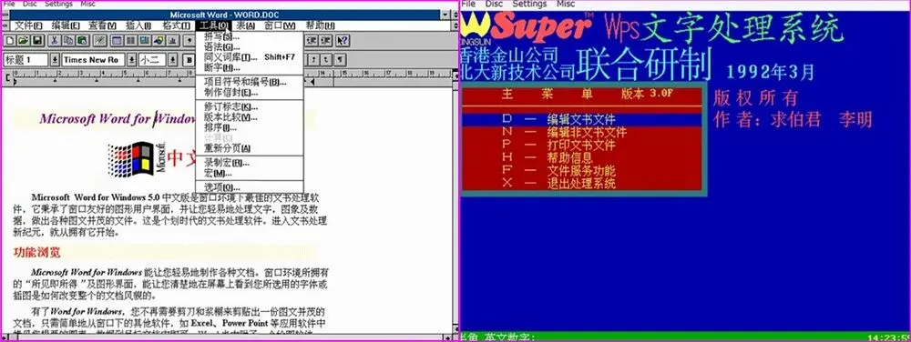 ▲1992年微软Word与WPS软件界面对比,可以直观感受到用户体验的差别