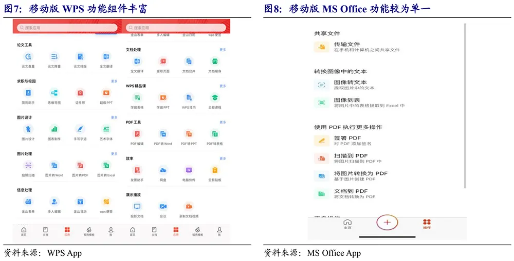 ▲移动版WPS与移动版微软Office功能组件对比(来源:开源证券)
