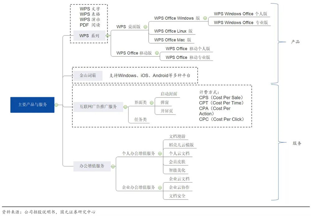 ▲WPS系列产品及服务矩阵(来源:国元证券)