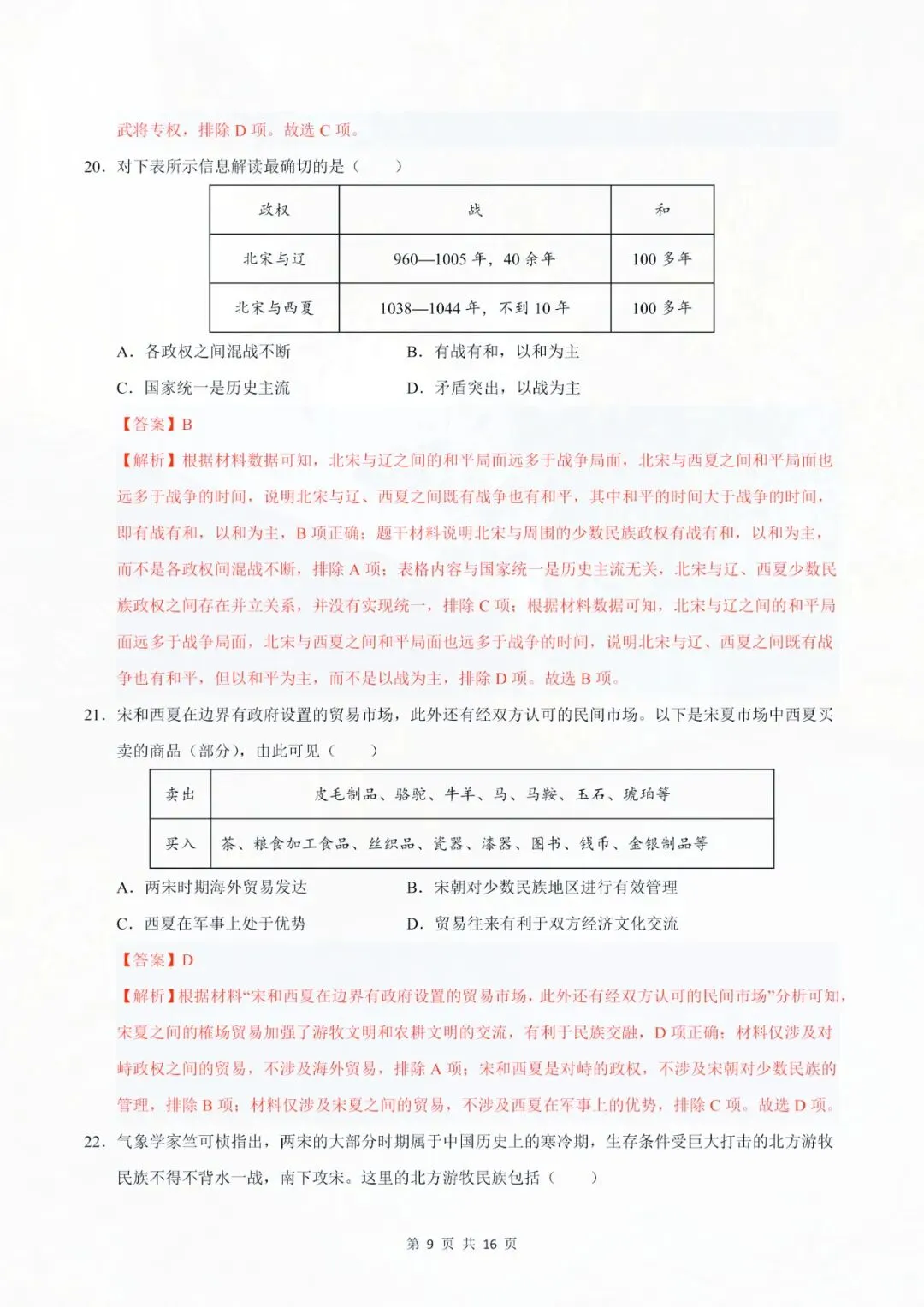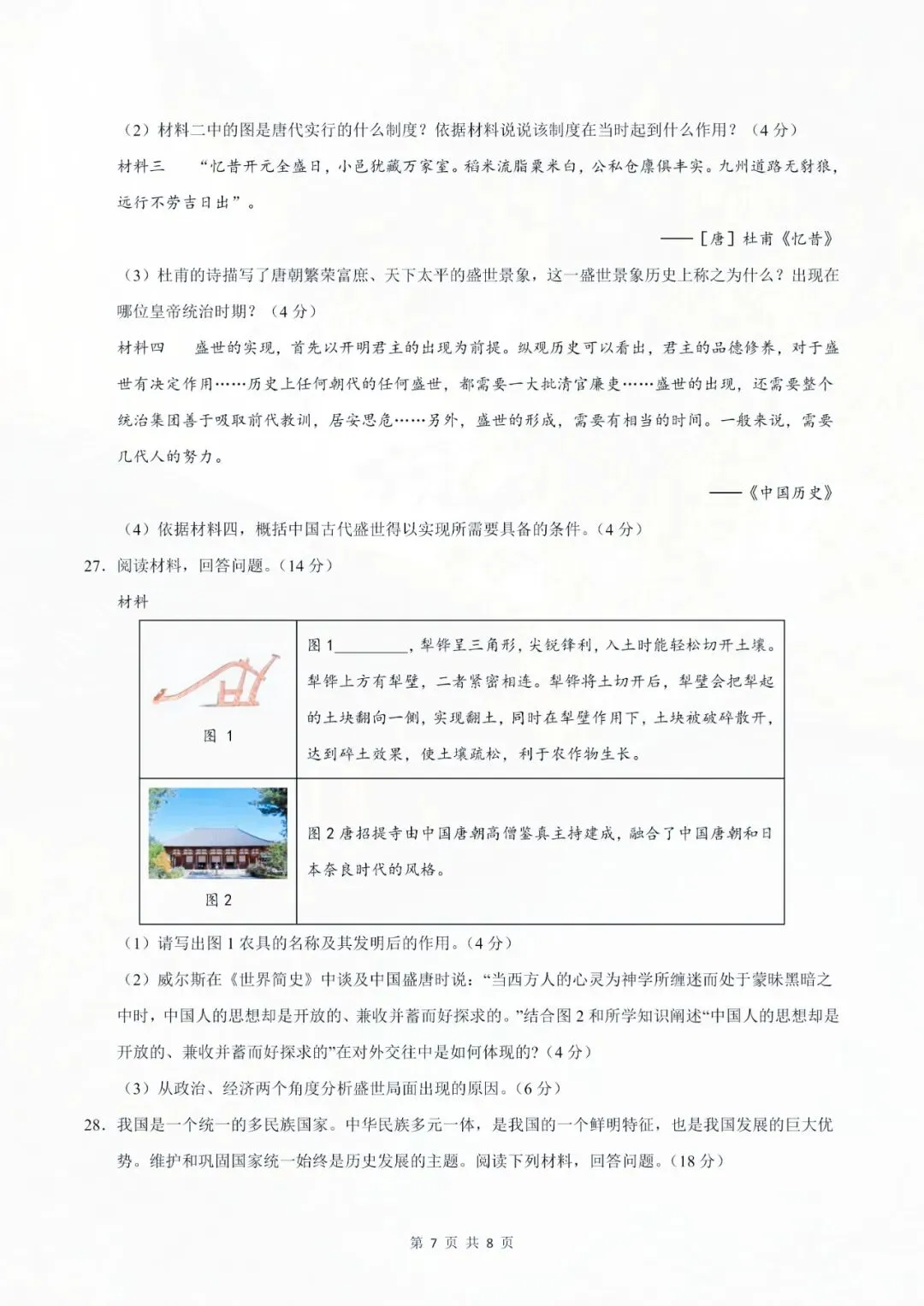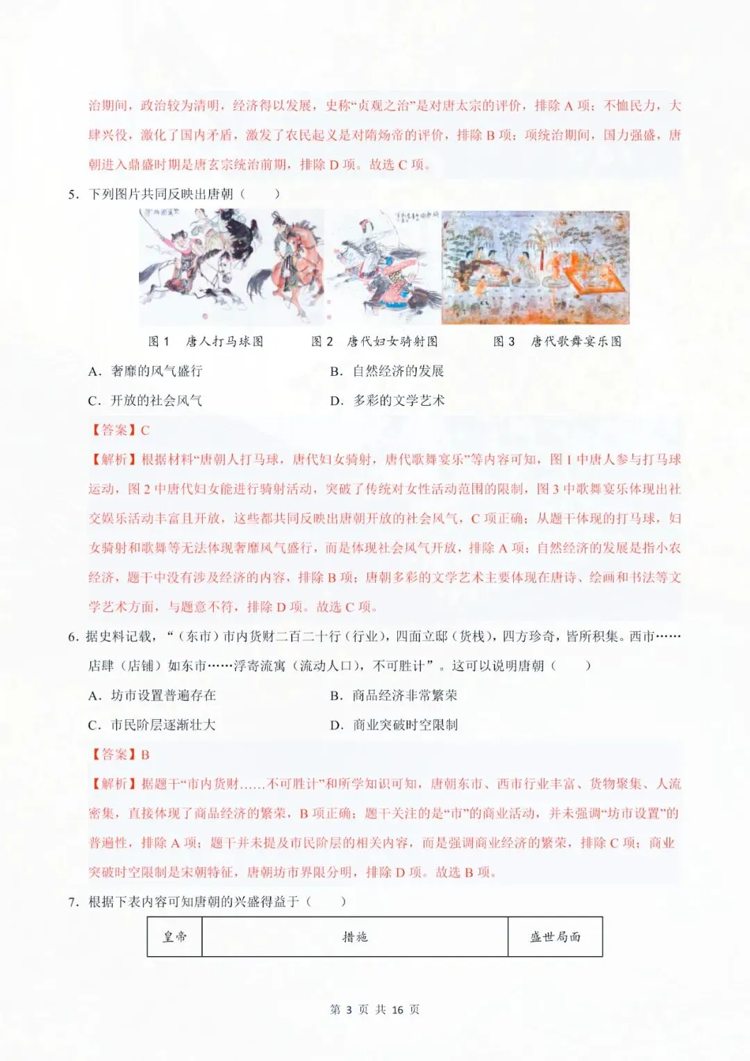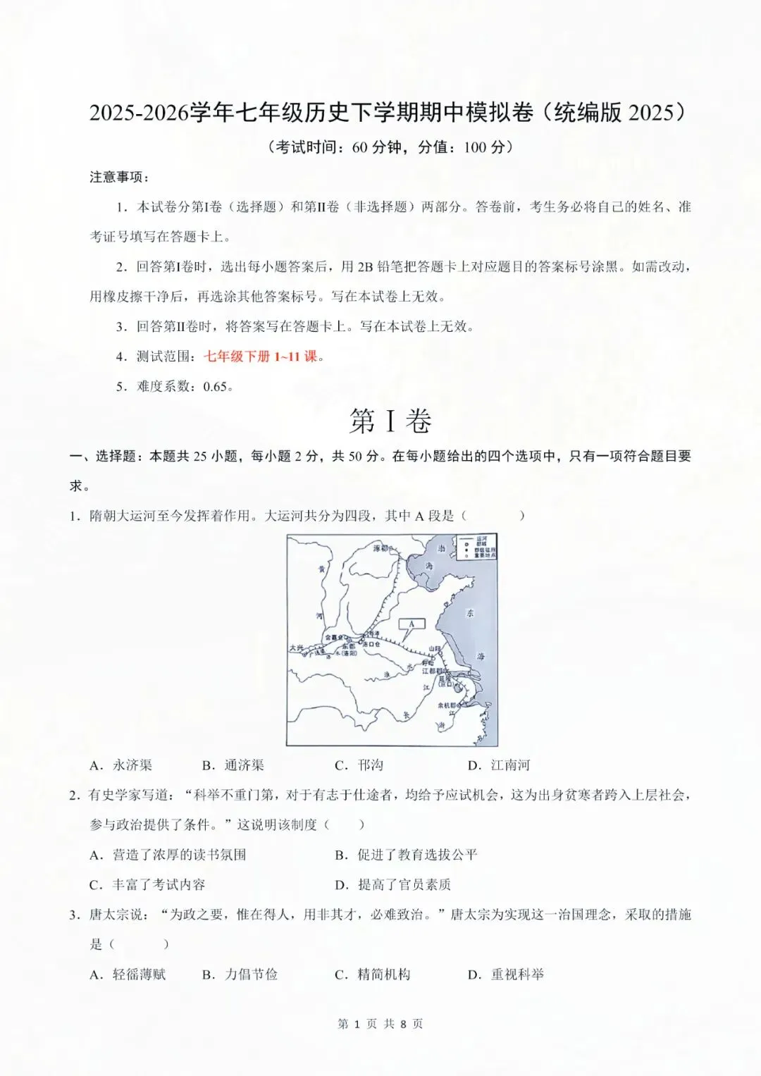 七年级下册历史 期中模拟卷全解全析 电子版可打印