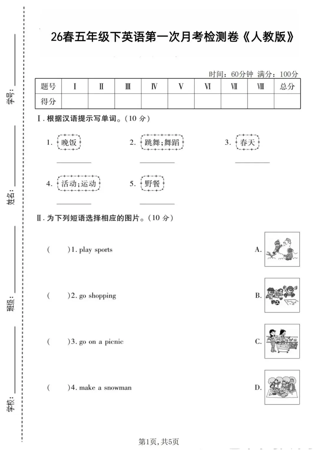 26春三四五六年级下英语第一次月考检测卷