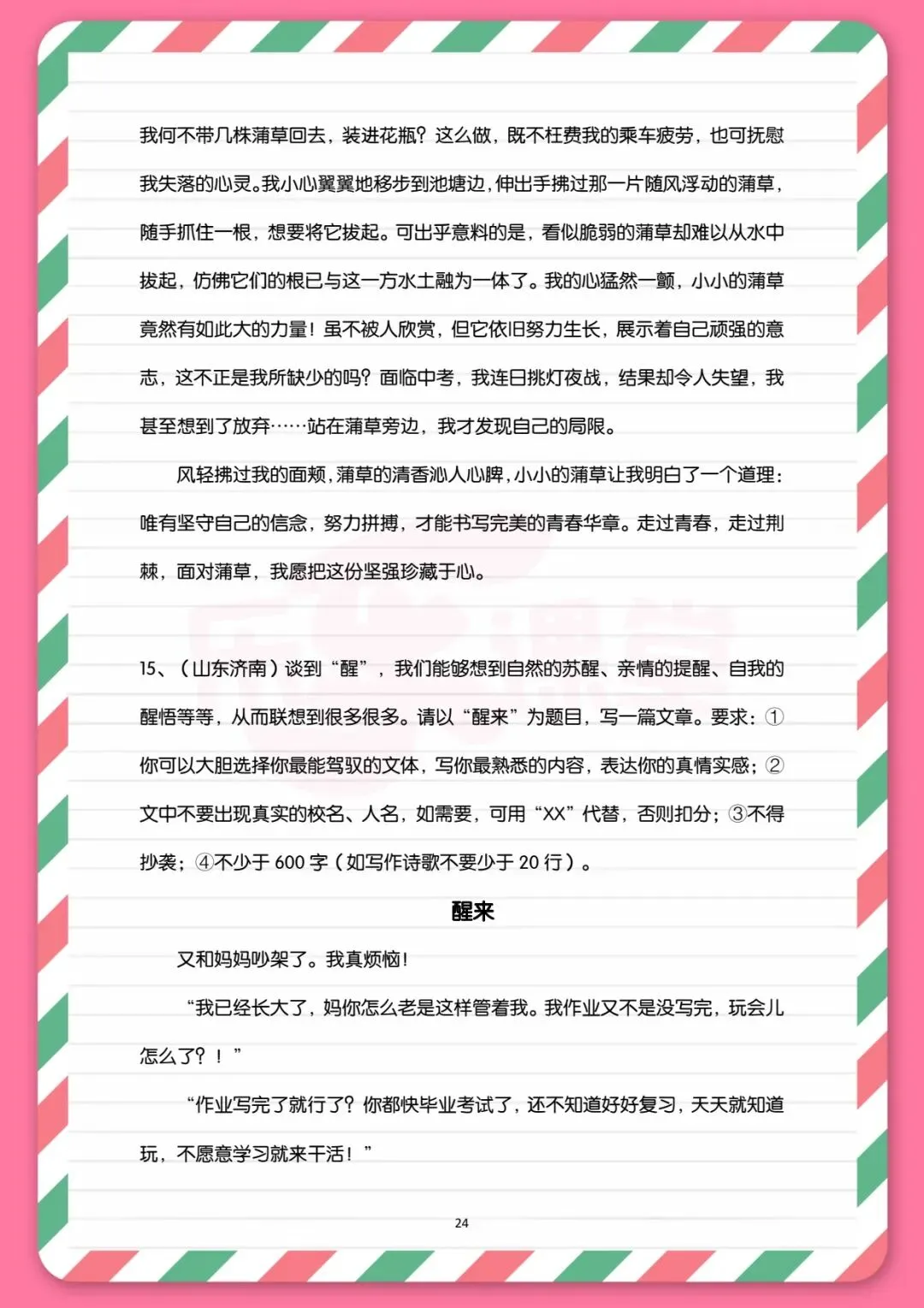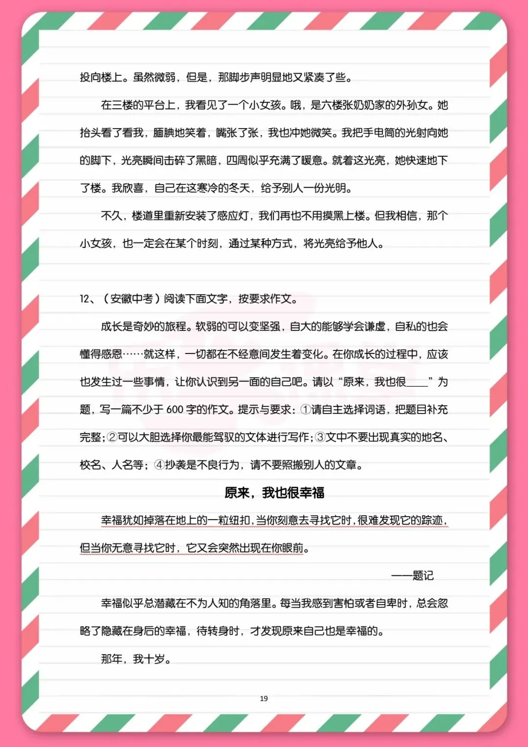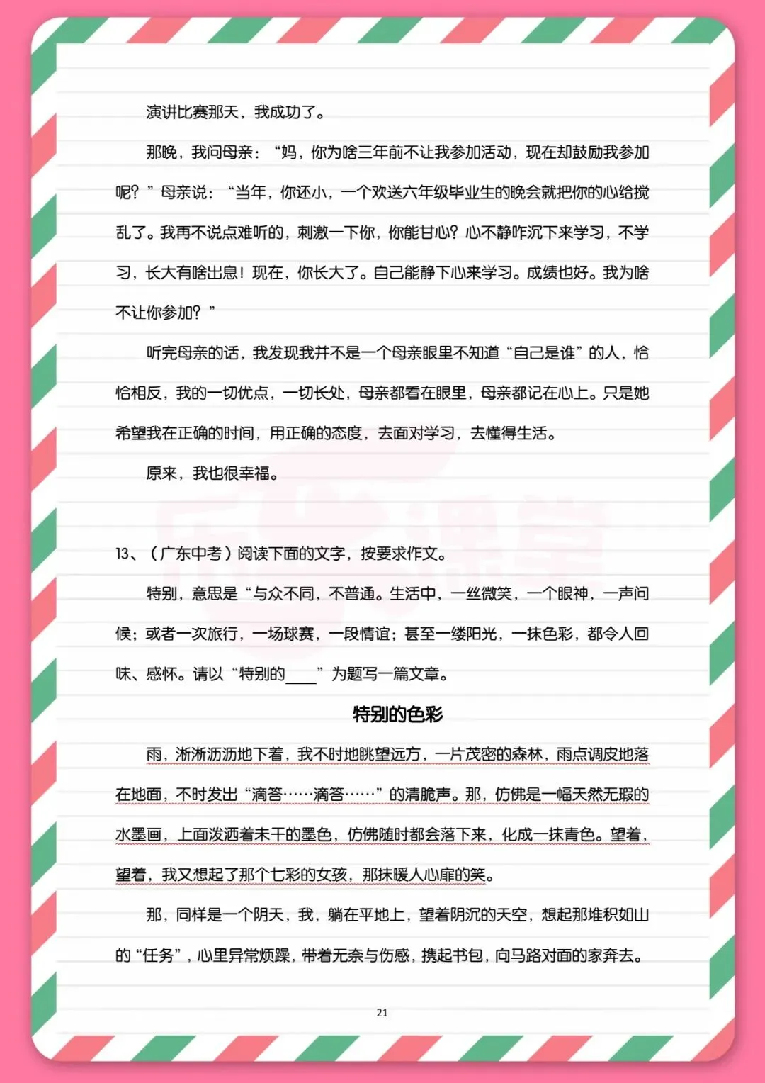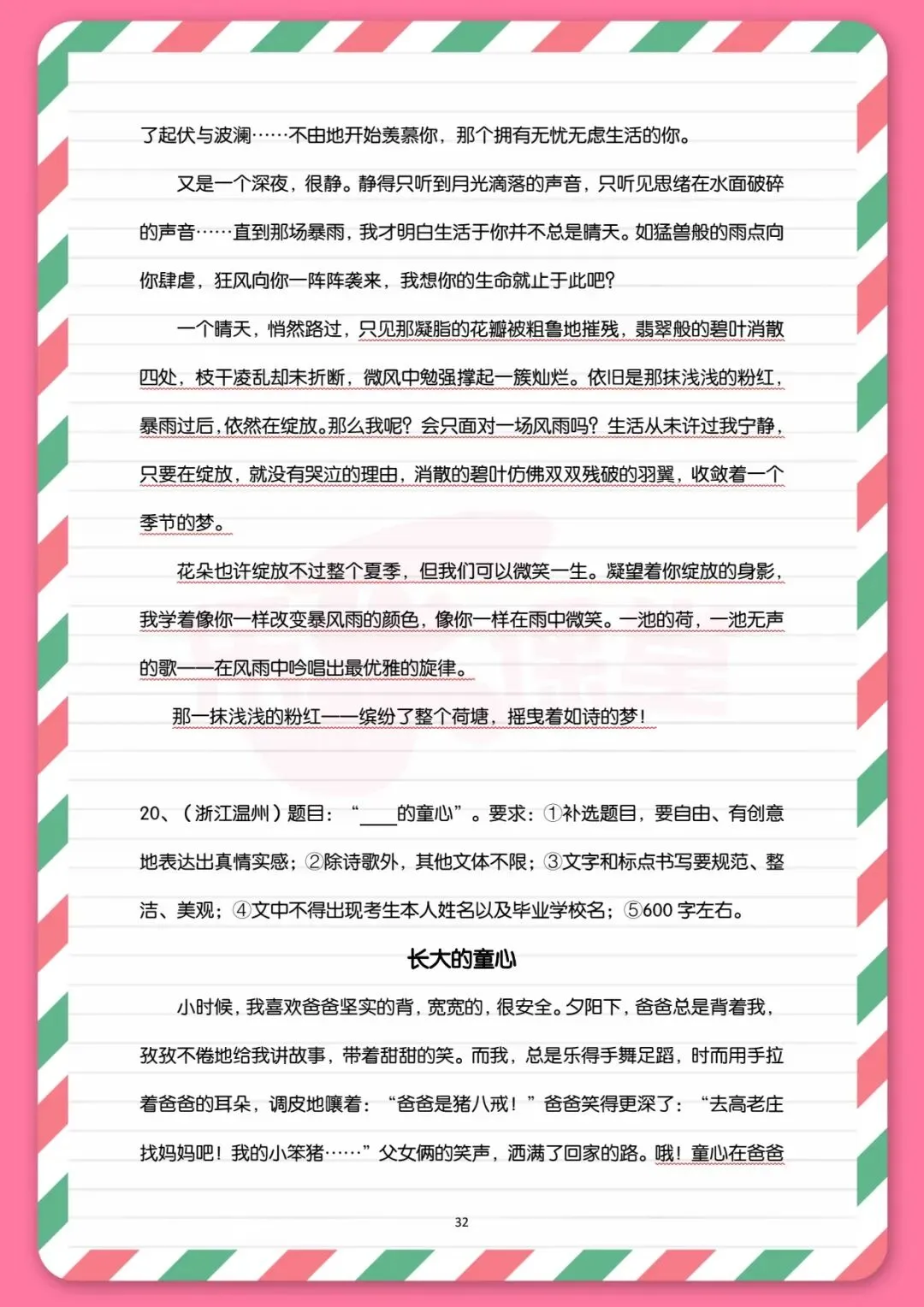 初中语文《中考满分作文20篇》〔电子版、下载〕