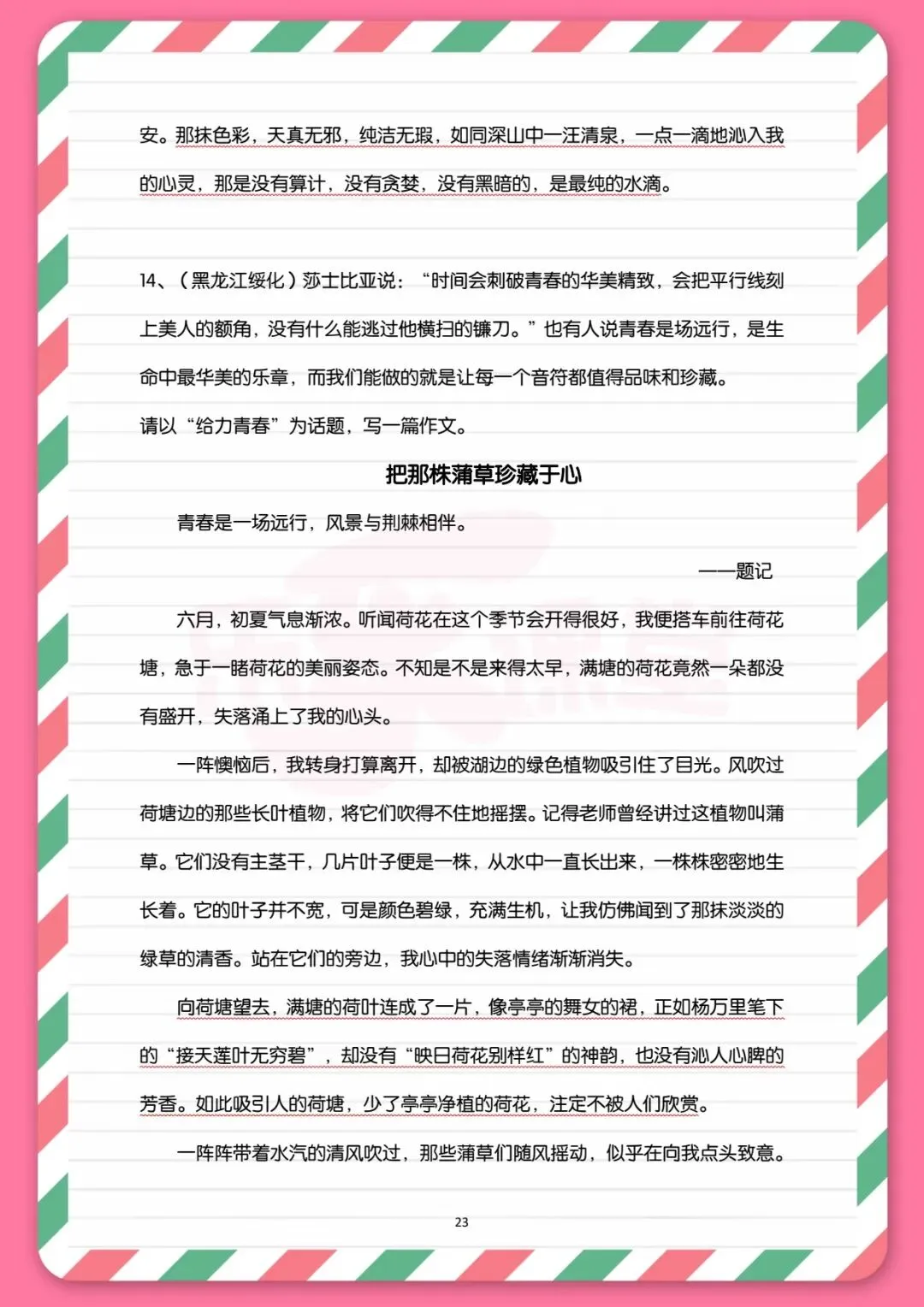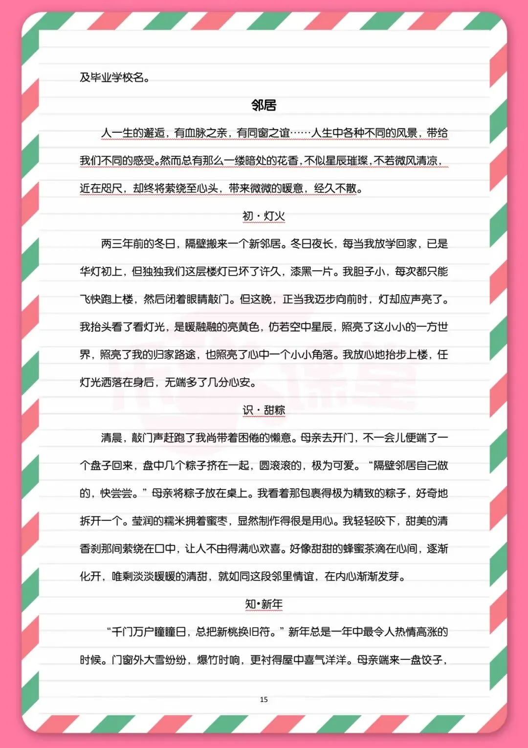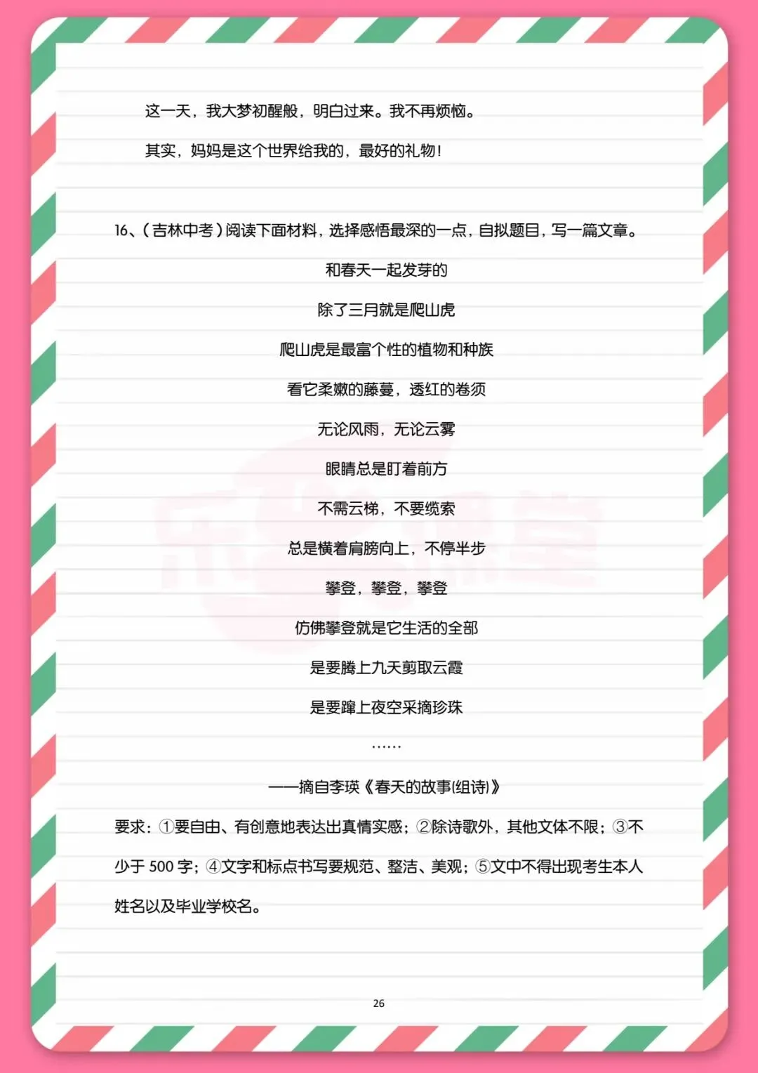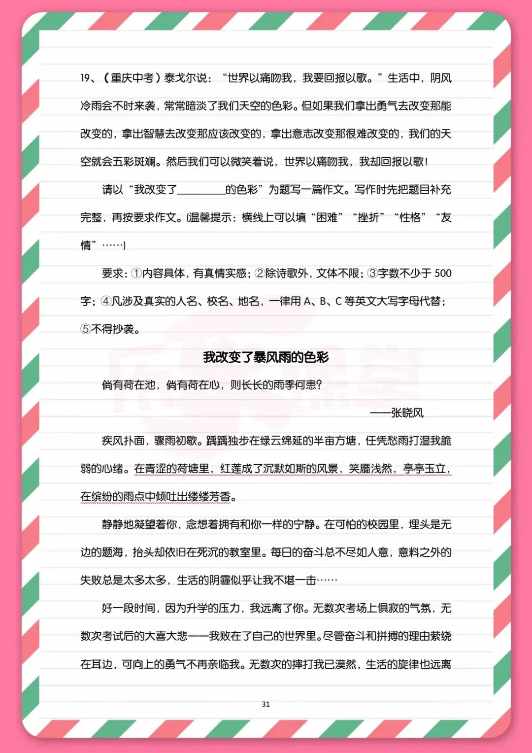 初中语文《中考满分作文20篇》〔电子版、下载〕