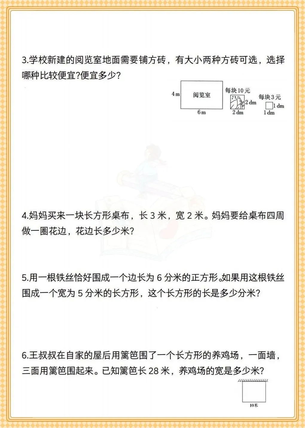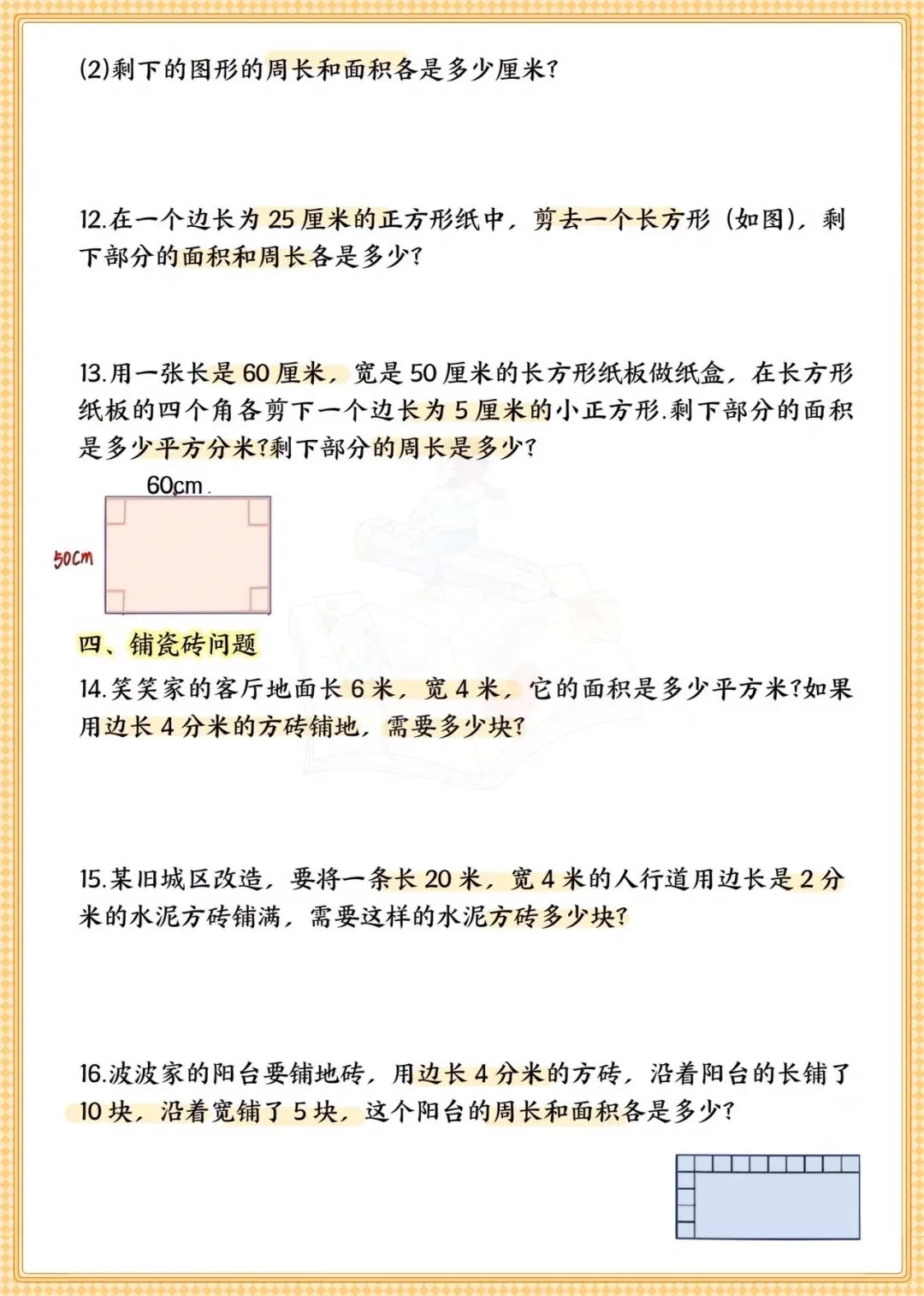 2. 专项突破:针对薄弱题型集中练,比如铺瓷砖问题重点算块数,围篱笆问题分析靠墙情况。