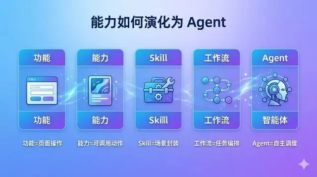 能力开放 → Skill 化 → Workflow 化 → Agent 化