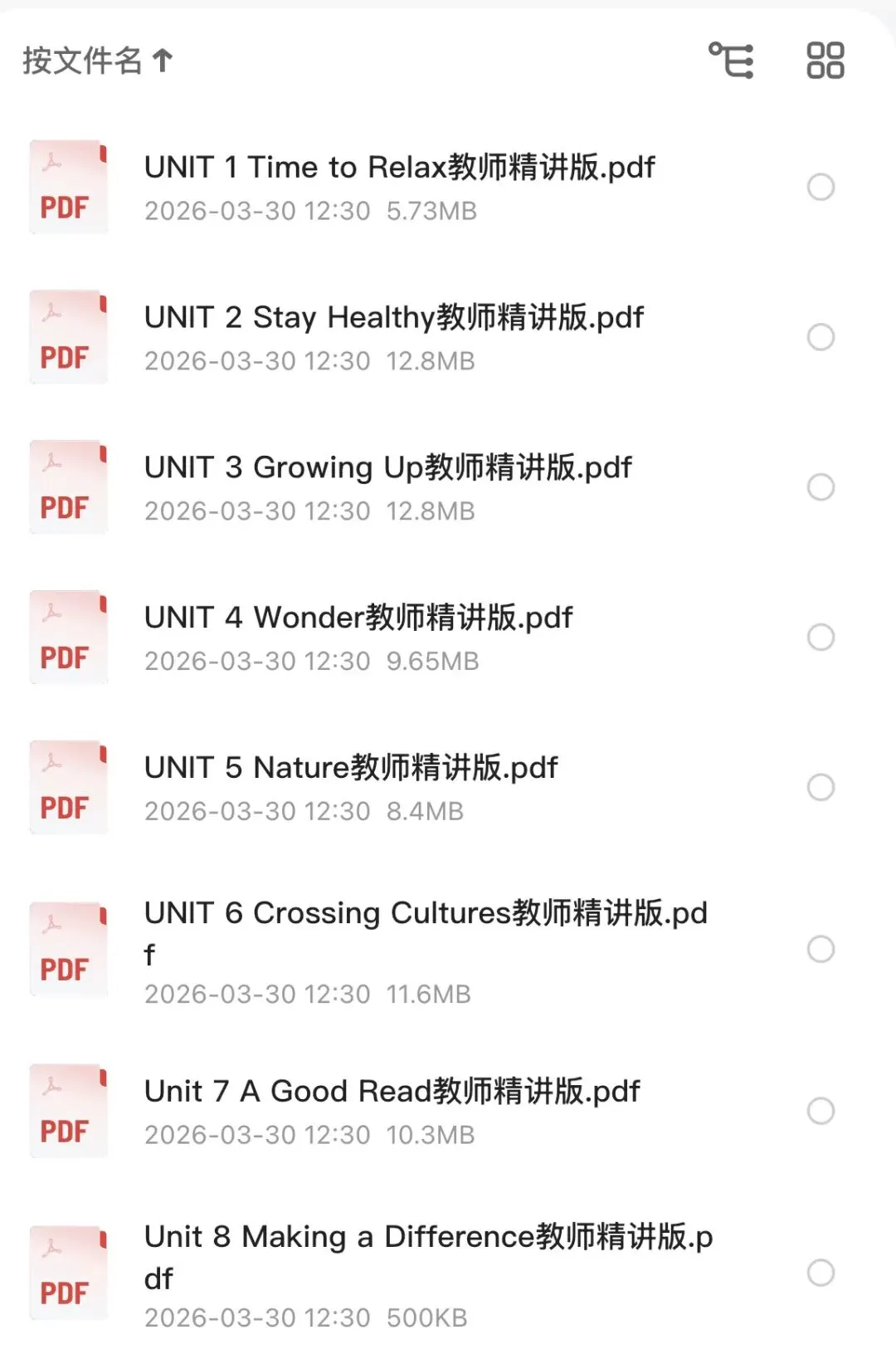 (电子版可下载打印)人教版英语八下同步讲义(教师精讲版+学生默写版)双版本 今天给大家推出:人教版英语八下同步讲义(教师精讲版+学生默写版)双版本 老师已为大家备好电子打印版,关注公众号后复制链接浏览器打开即可直接领取完整电子版资料。 篇幅有限,以下仅展示部分 如何获取完整版资料 点击关注“三藏改作文”公众号 关注公众号后复制链接到浏览器 链接:https://pan.quark.cn/s/8167d523caa2
