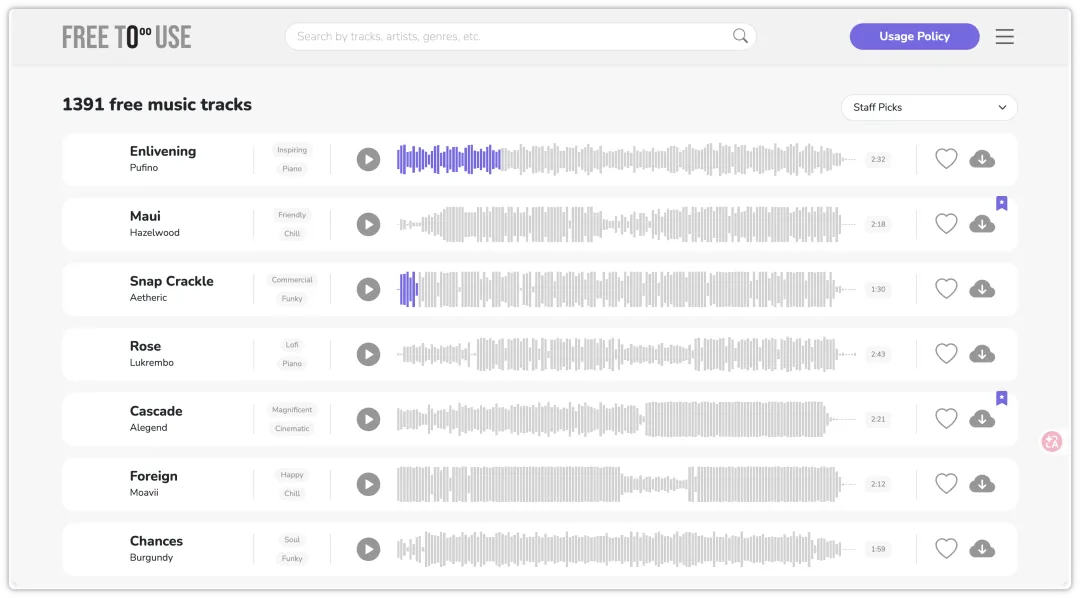 现在随着版权问题越来越重视,无论做什么事情都需要多考虑一些版权问题,也许一首歌一张图都可能涉及到侵权,尤其是对于一些公司企业创作图文和视频内容更应该重视,今天给大家分享一个国外的音乐下载网站吧,所有的背景音乐都可以免费下载,商业用途需要购买,个人使用需要标注来源,我听了几首音乐的确不错,需要的可以收藏起来。