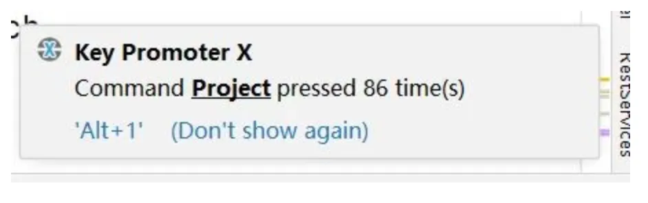 简介:Key Promoter X 是一个提示插件。在IDEA里使用鼠标操作时,会有这个操作的快捷键在界面的右下角进行告知。有个小缺点是有些没有快捷键的操作,会直接把操作的名字提示出来,实际上那样的提示是没有作用的,可以点击Don’t show again来忽略。